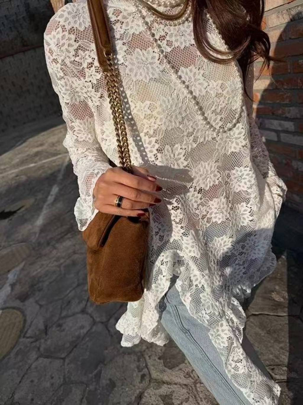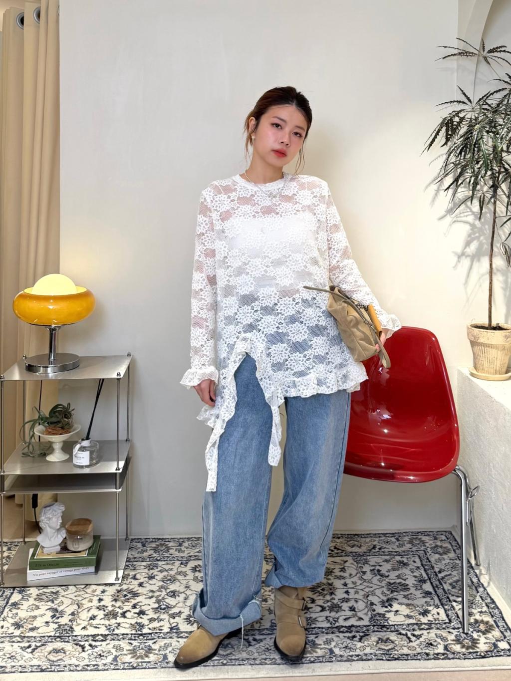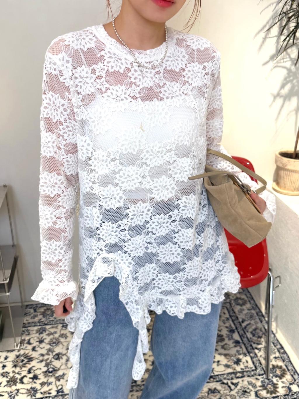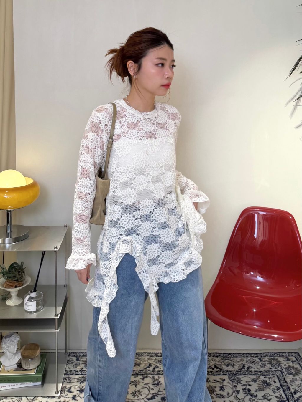 主頁 lace透視不規則長袖上衣(LIVE SALE)