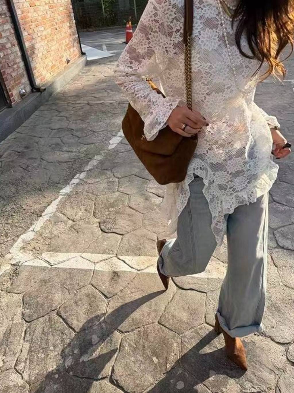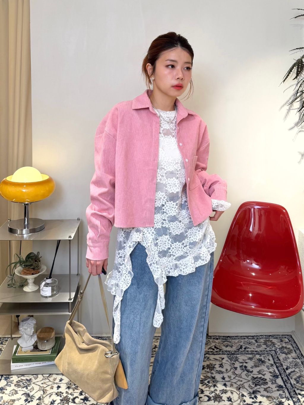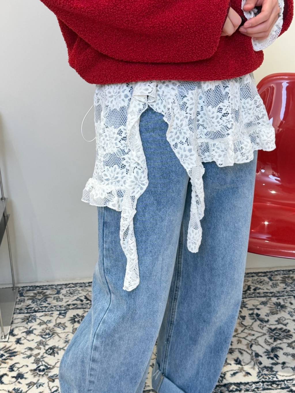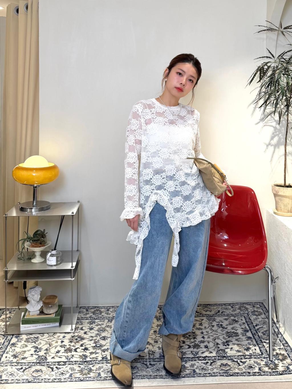 主頁 lace透視不規則長袖上衣(LIVE SALE)
