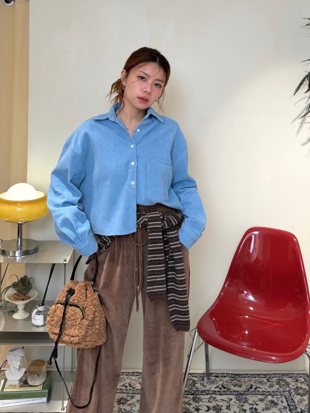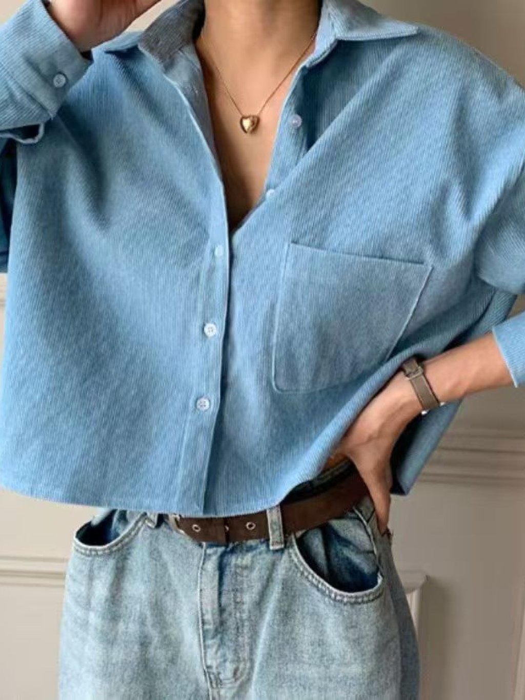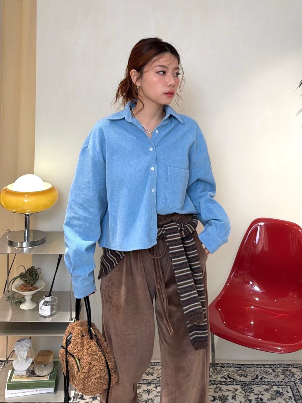 主頁 簡約純色燈芯絨襯衫(LIVE SALE)