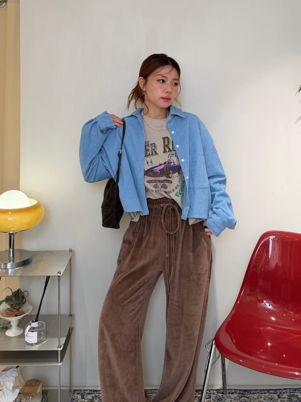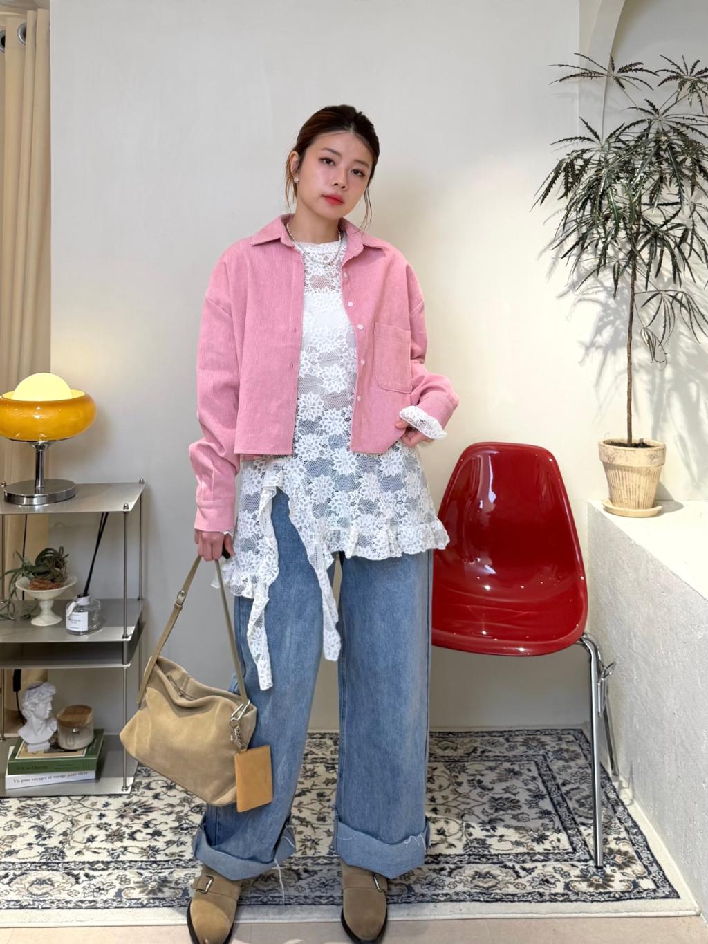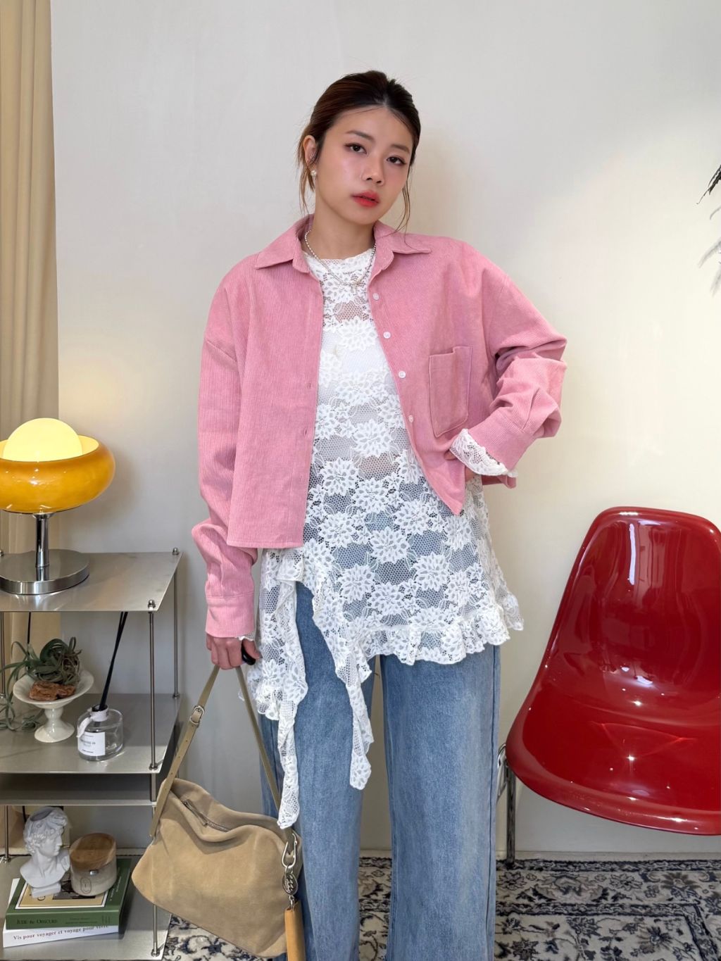 主頁 簡約純色燈芯絨襯衫(LIVE SALE)