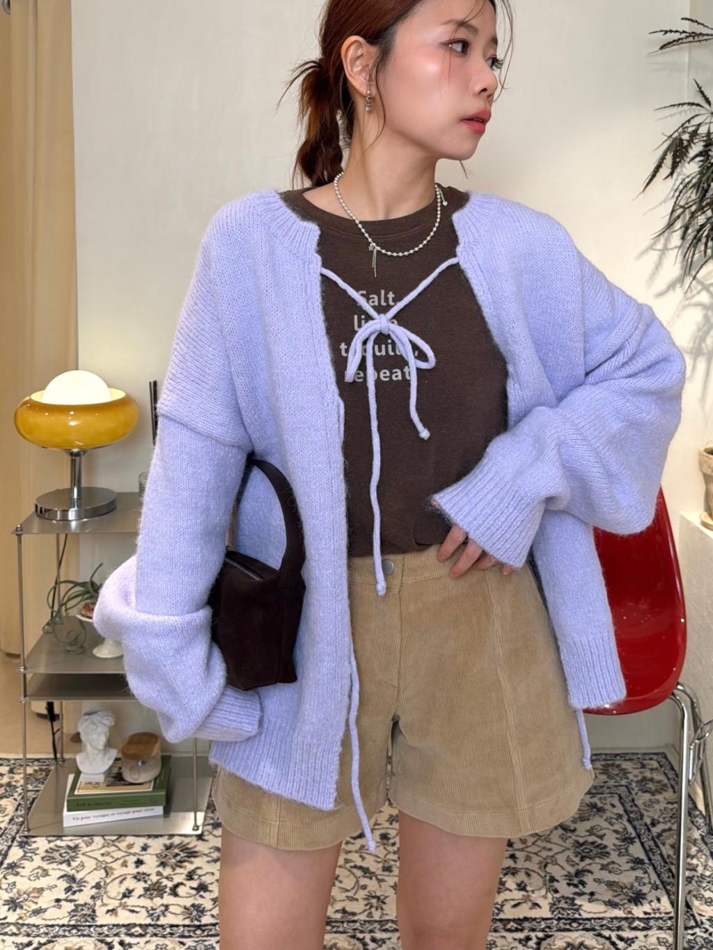 純色綁繩針織開衫(LIVE SALE)