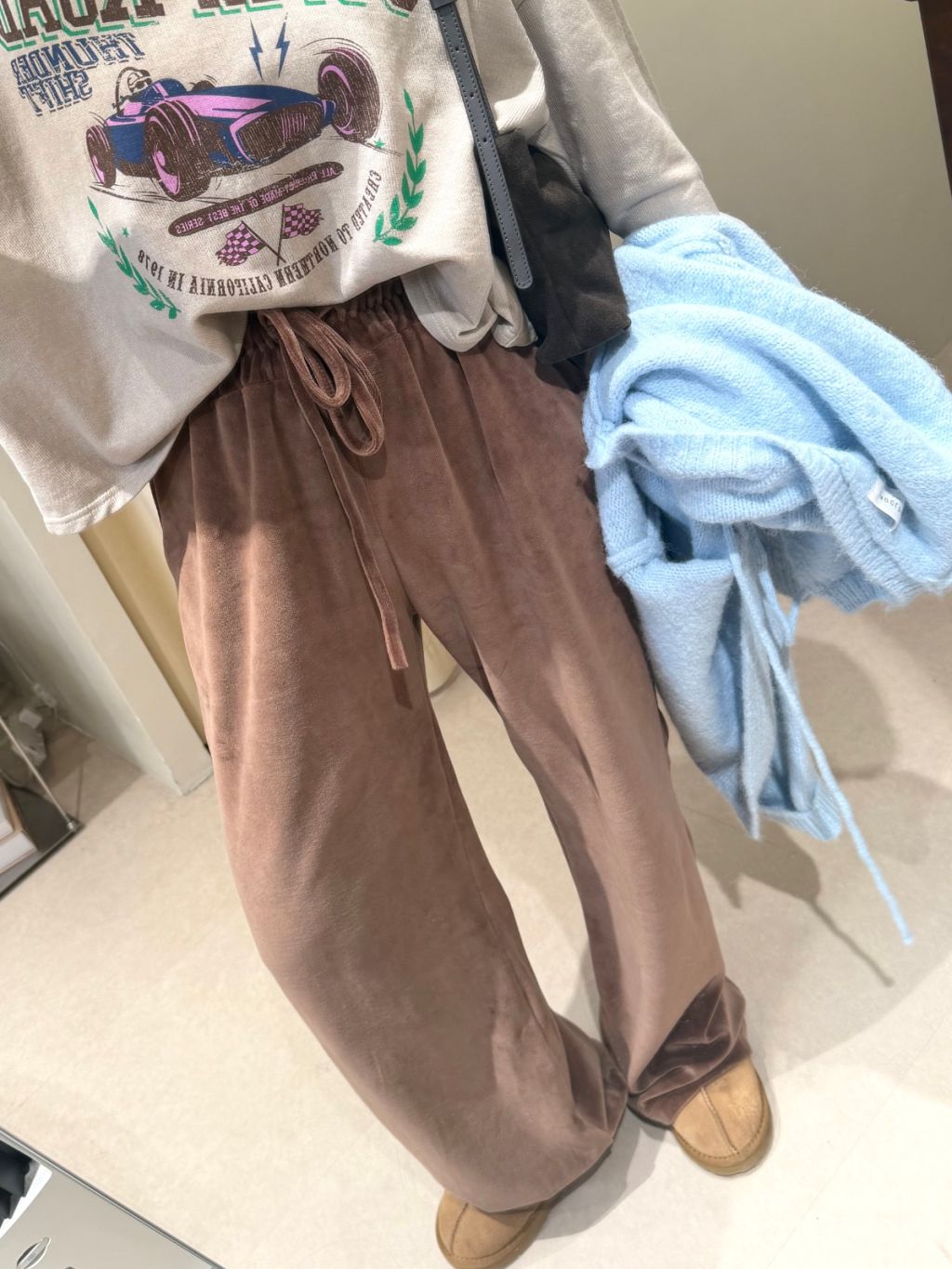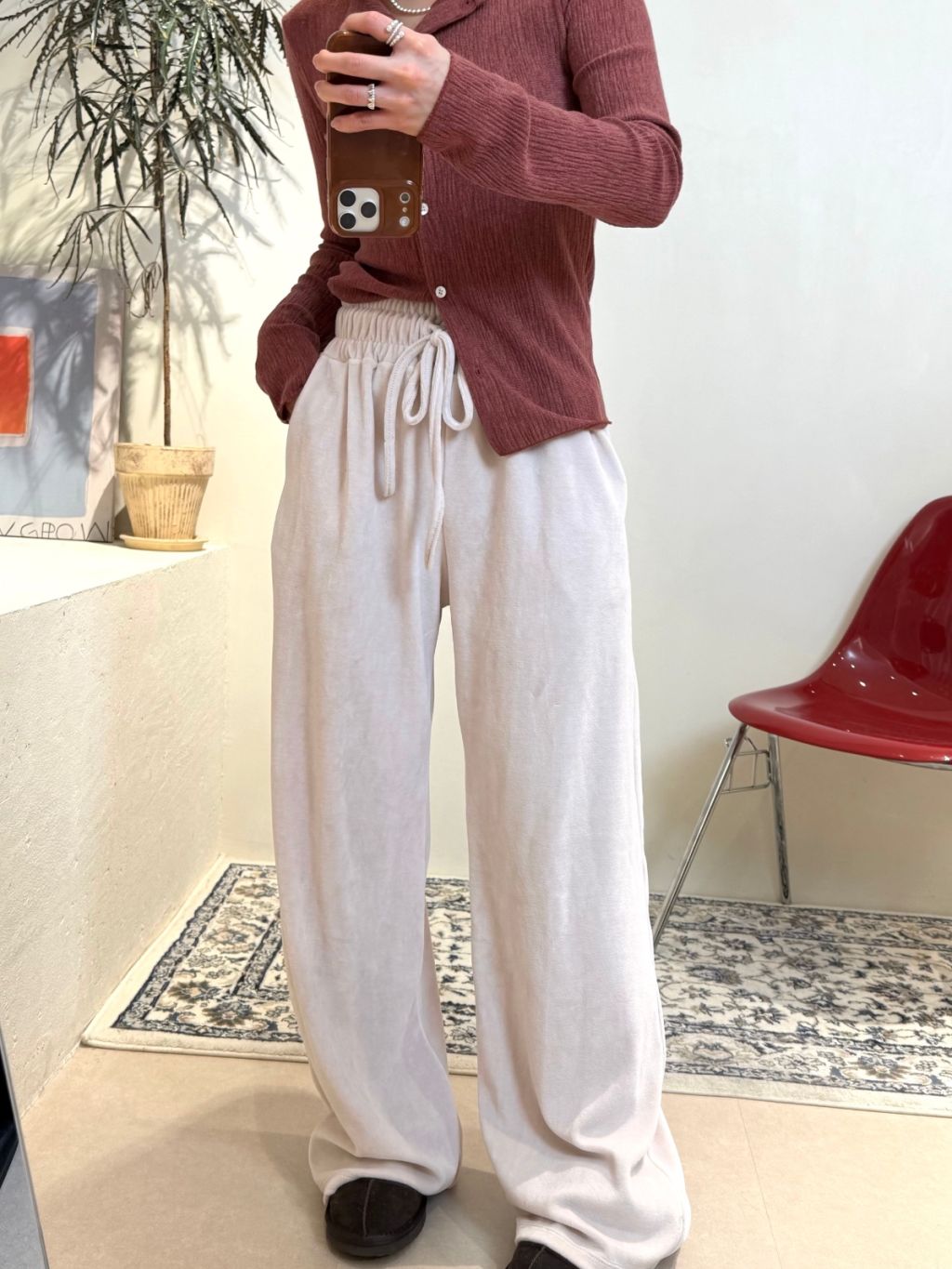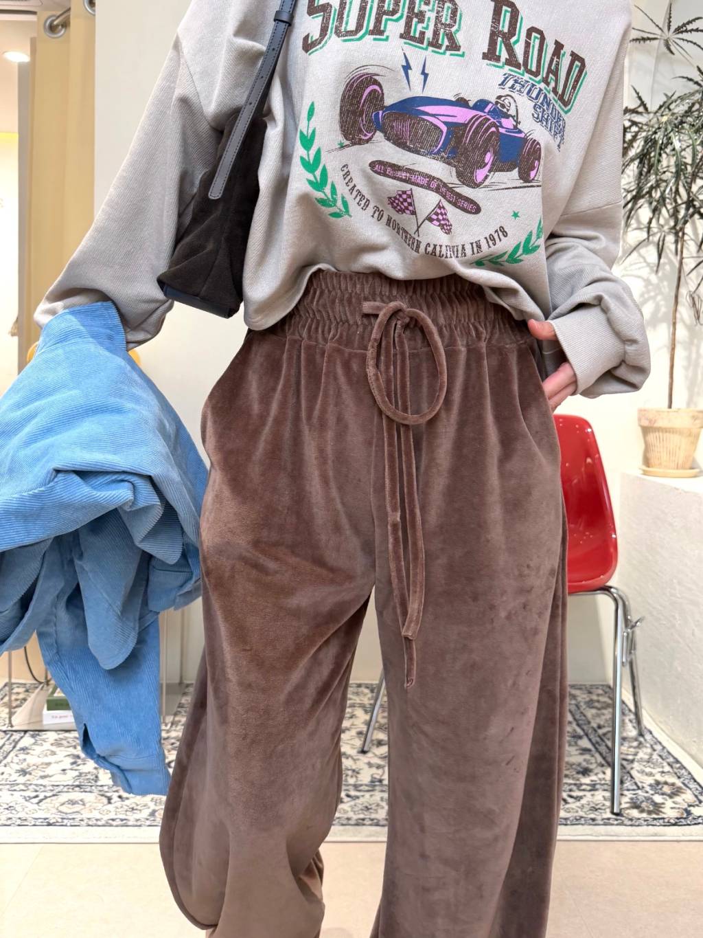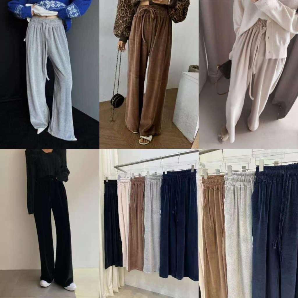 主頁 絲絨橡根腰抽繩寬鬆長褲(LIVE SALE)