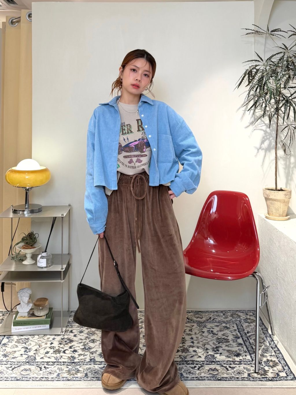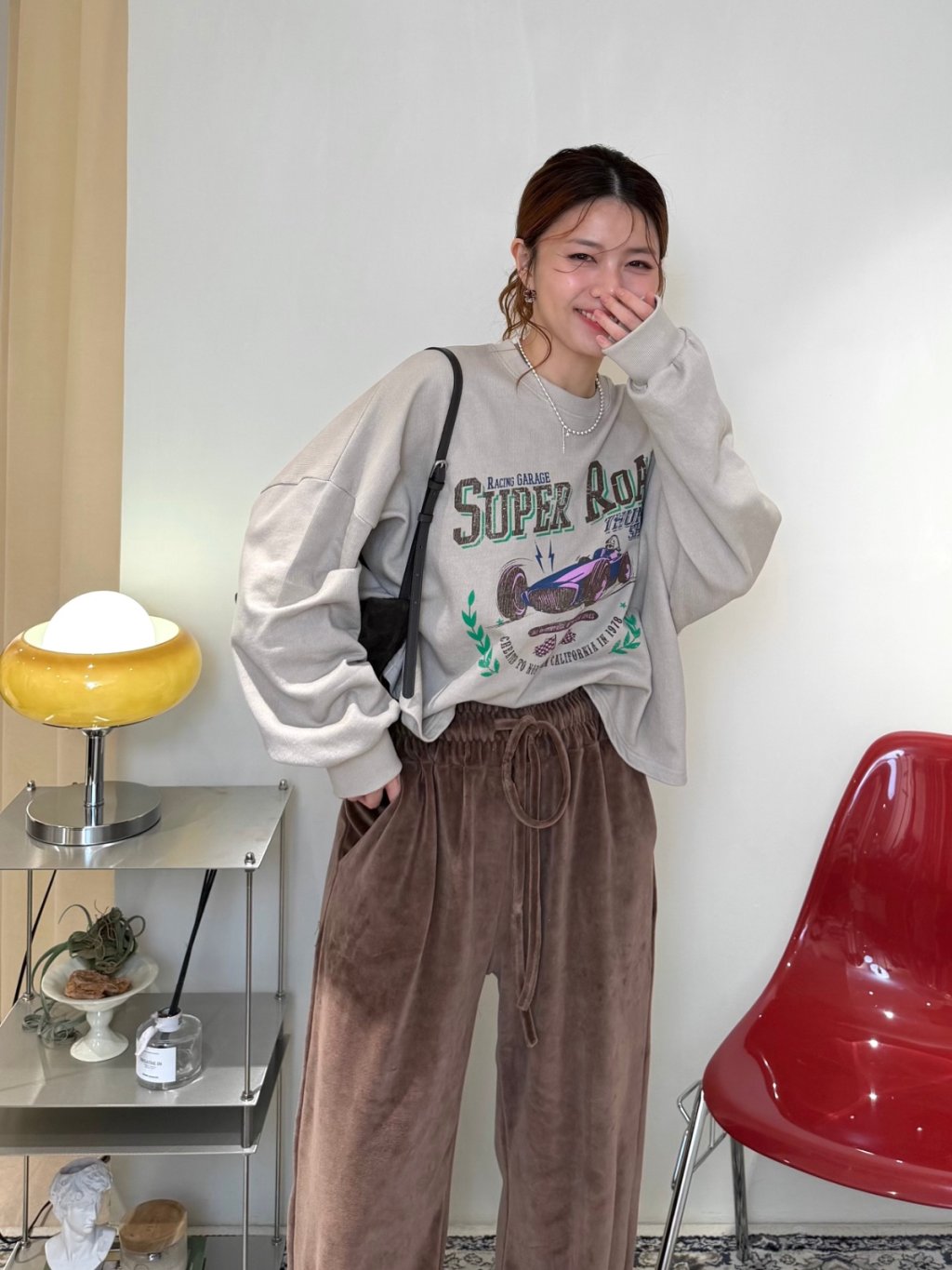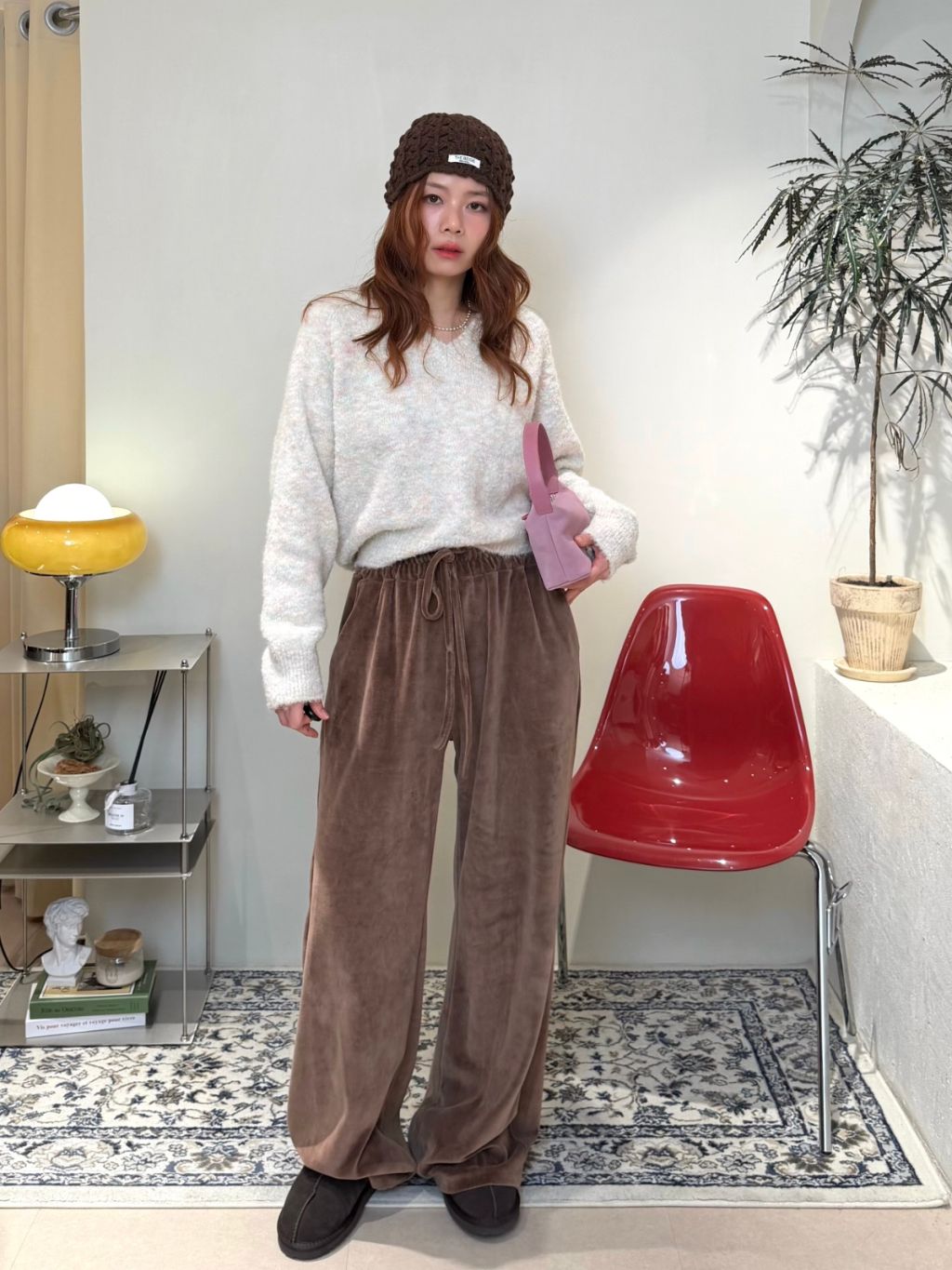 主頁 絲絨橡根腰抽繩寬鬆長褲(LIVE SALE)