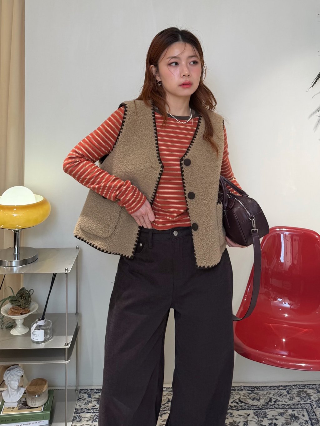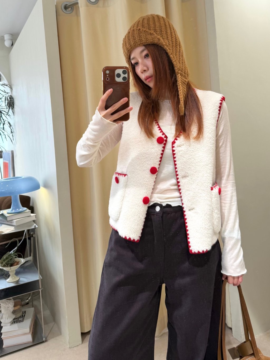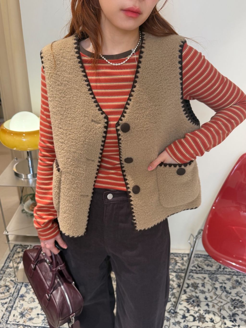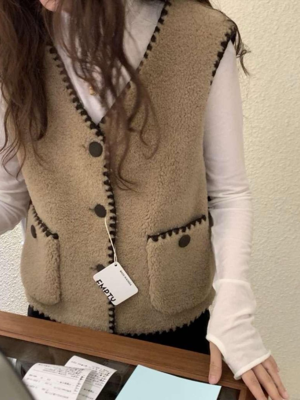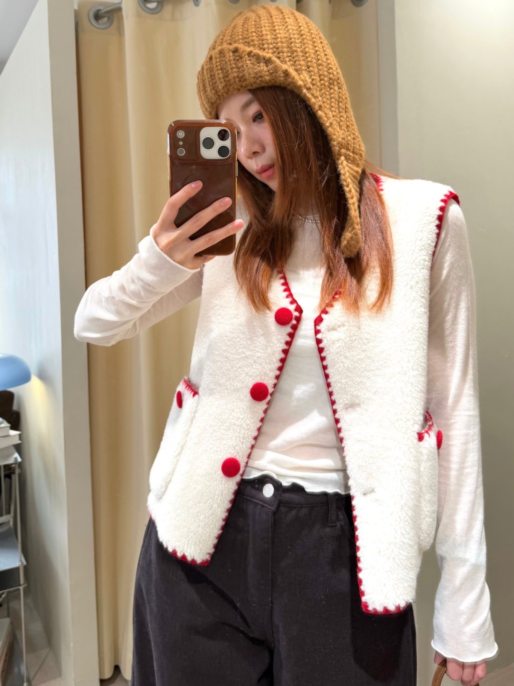 車線撞色邊毛絨馬甲(LIVE SALE)