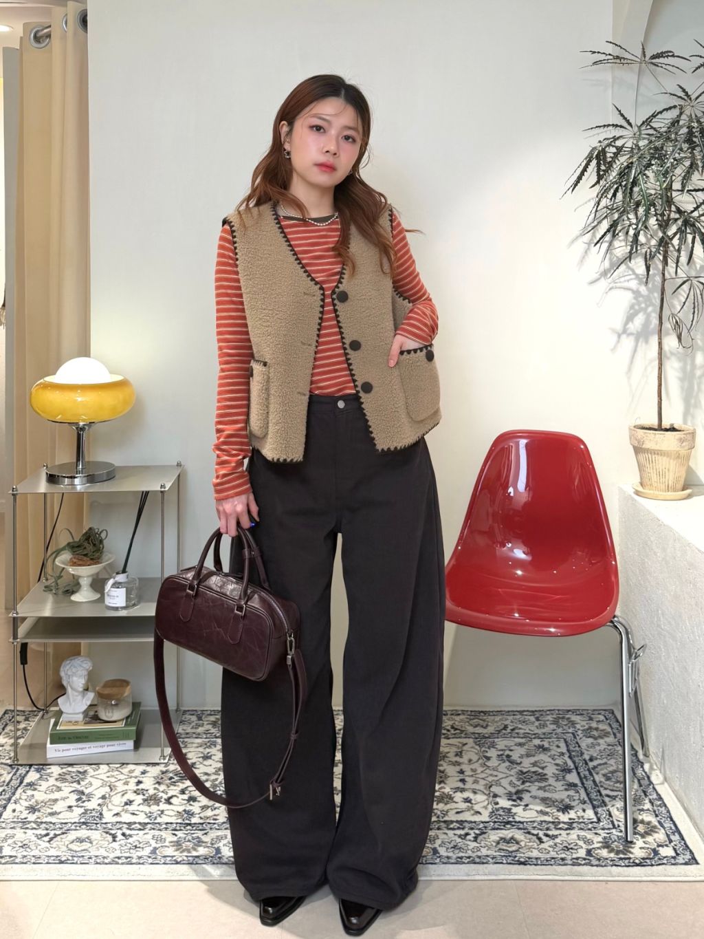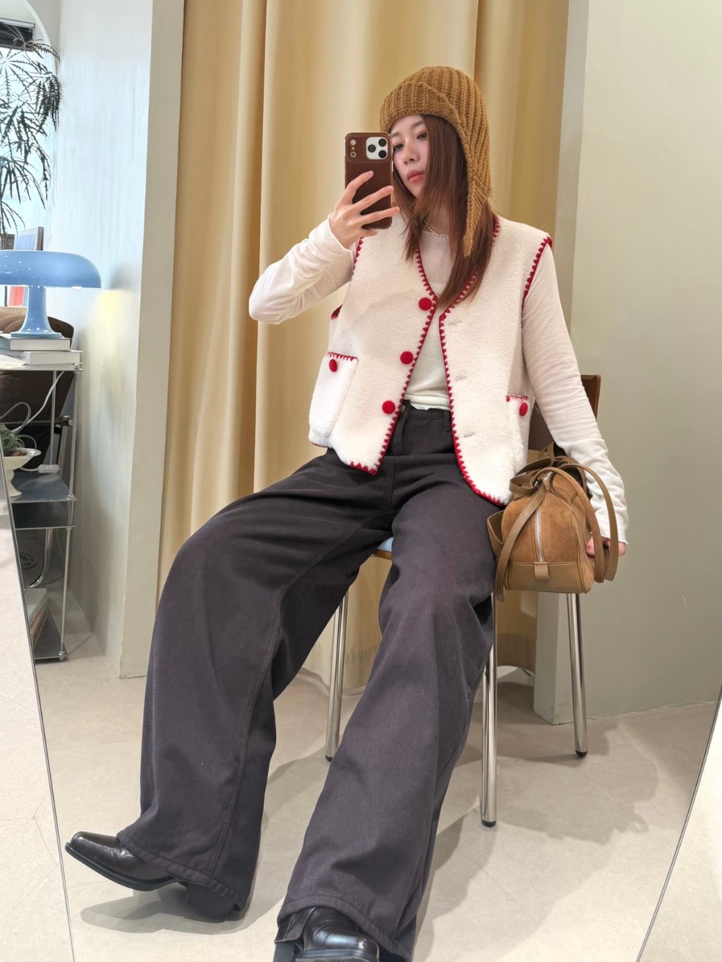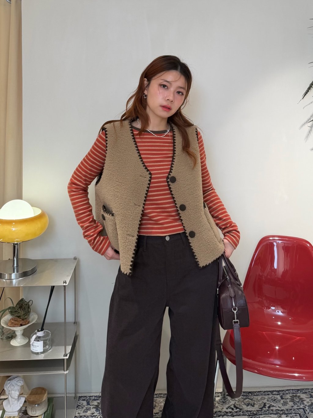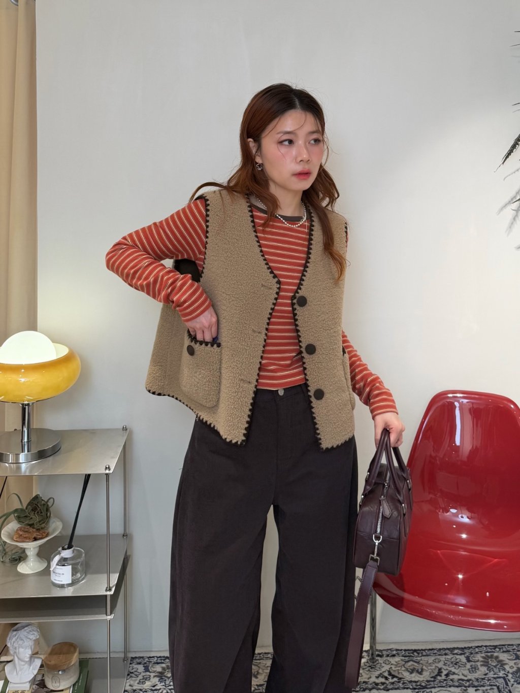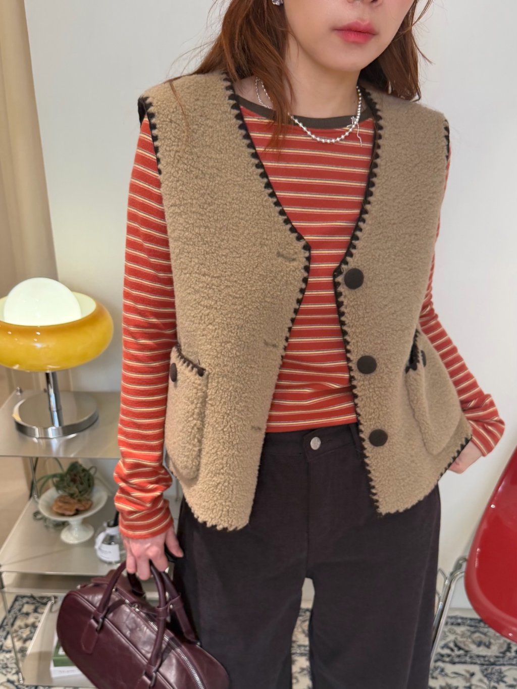 車線撞色邊毛絨馬甲(LIVE SALE)