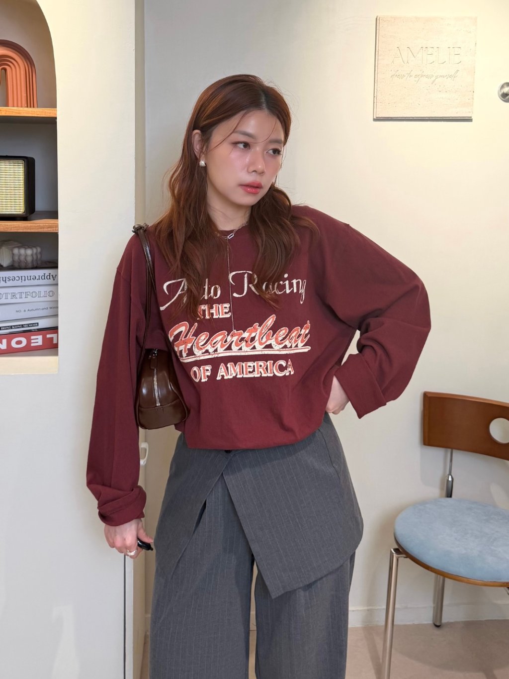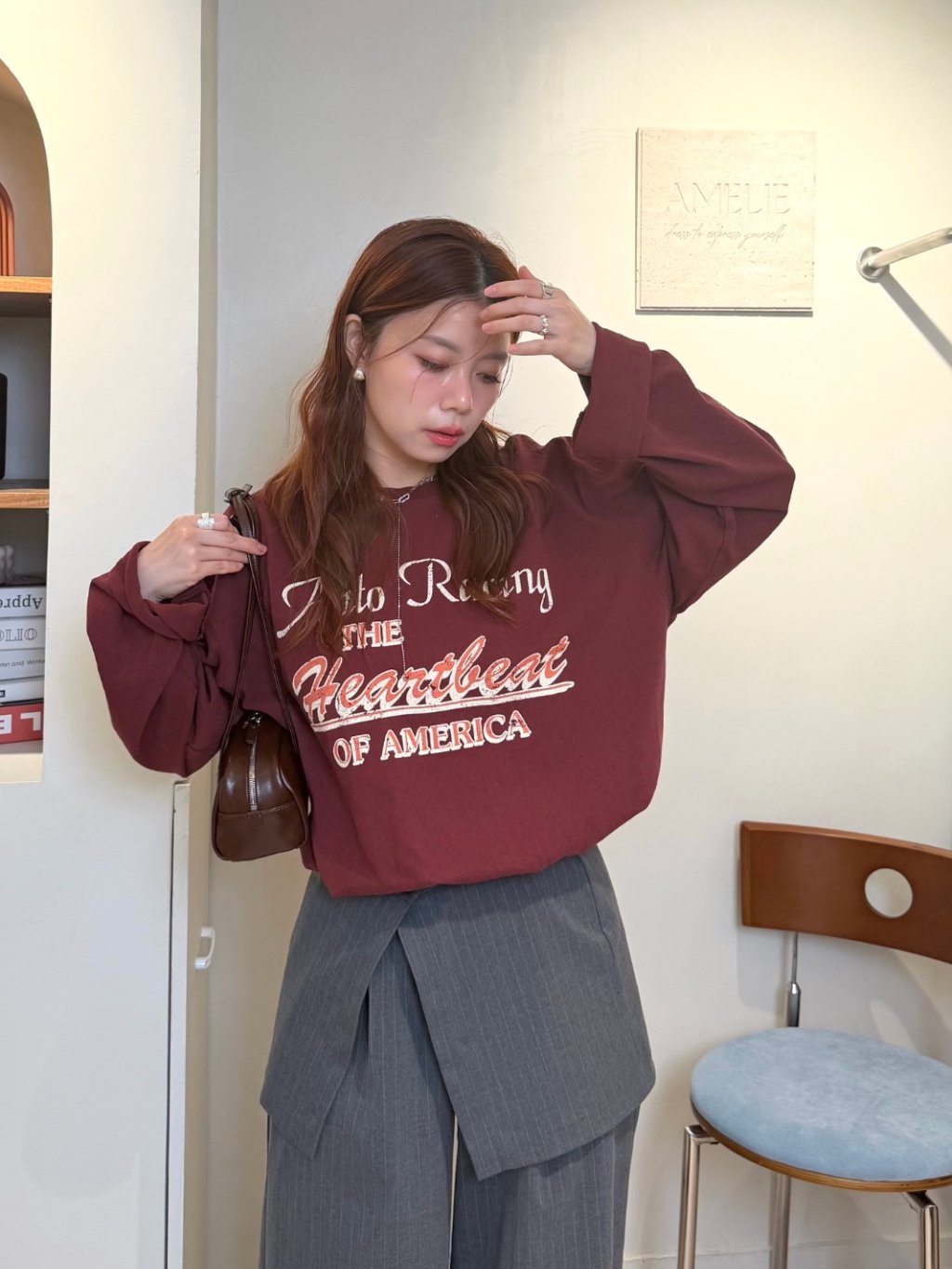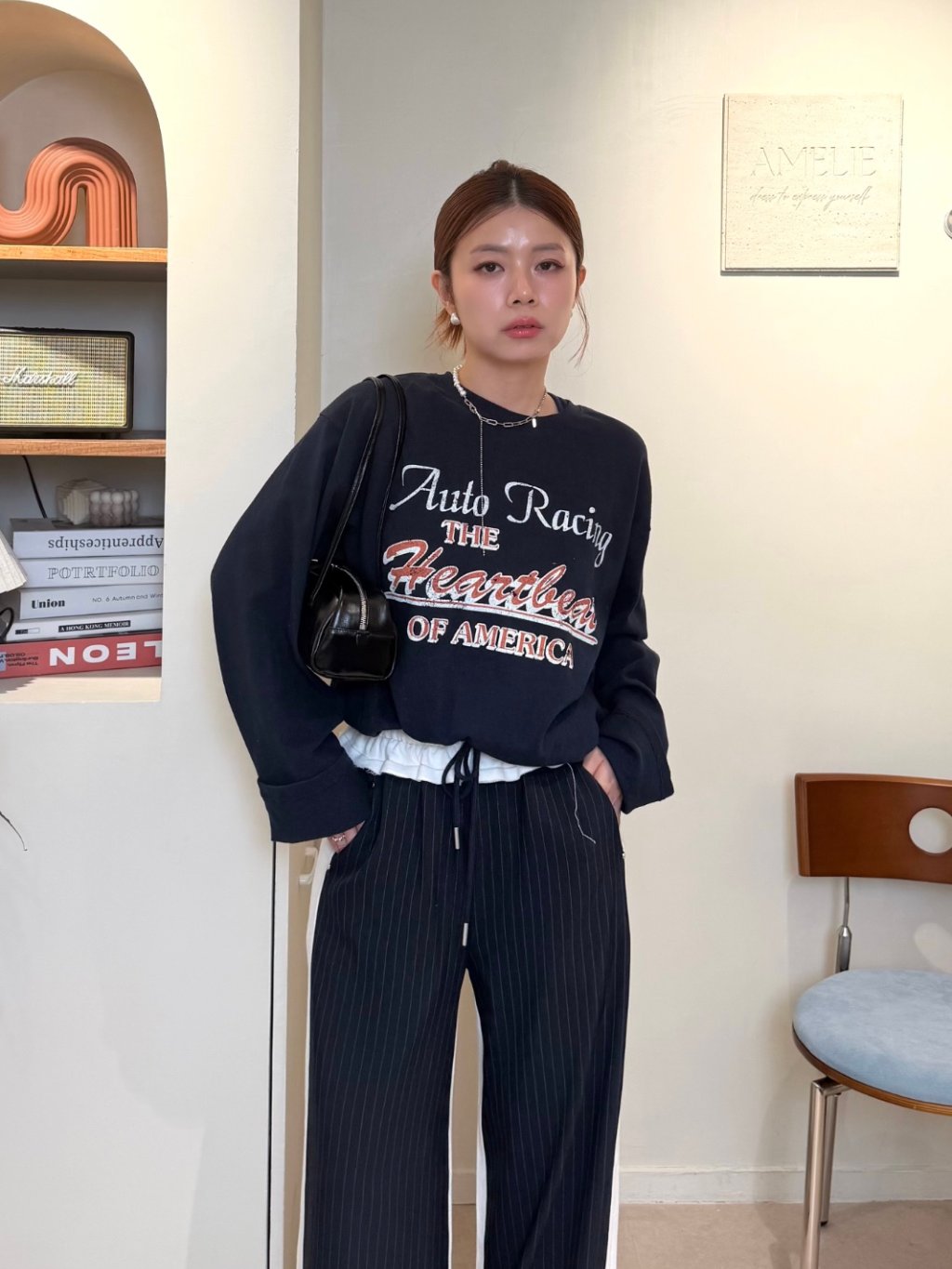 主頁 假兩件收腰長袖衛衣(LIVE SALE)