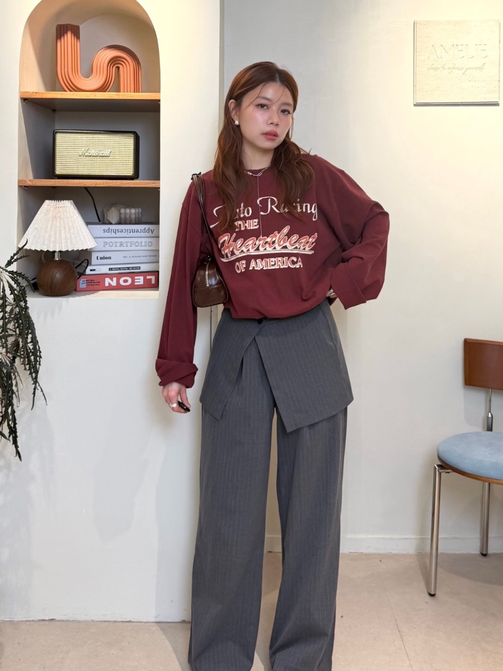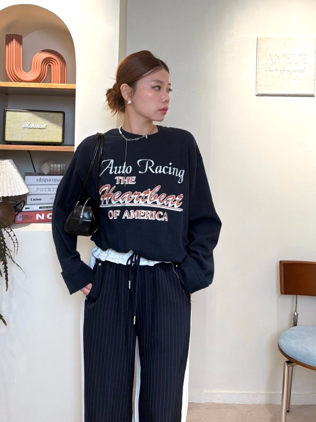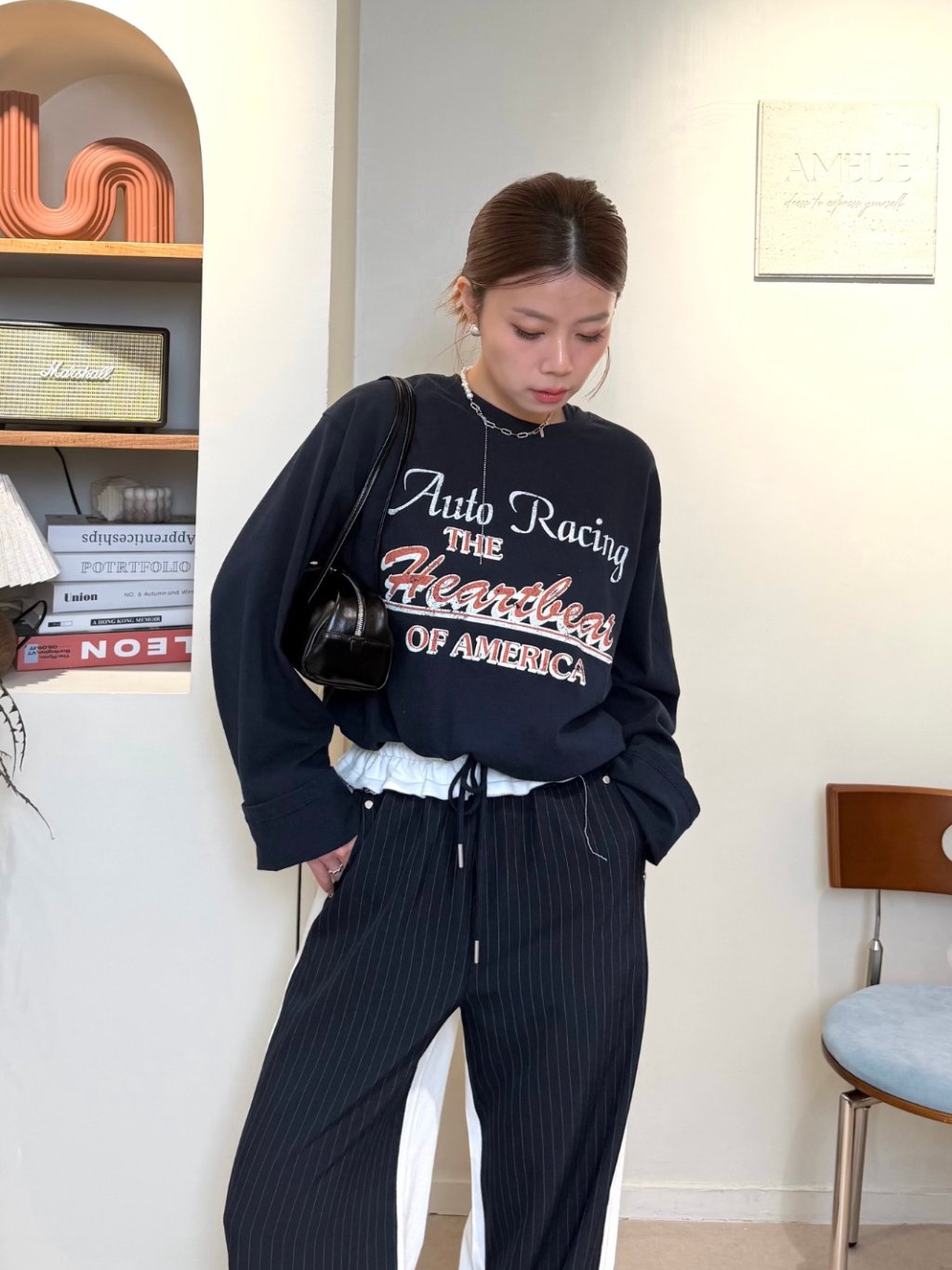 主頁 假兩件收腰長袖衛衣(LIVE SALE)
