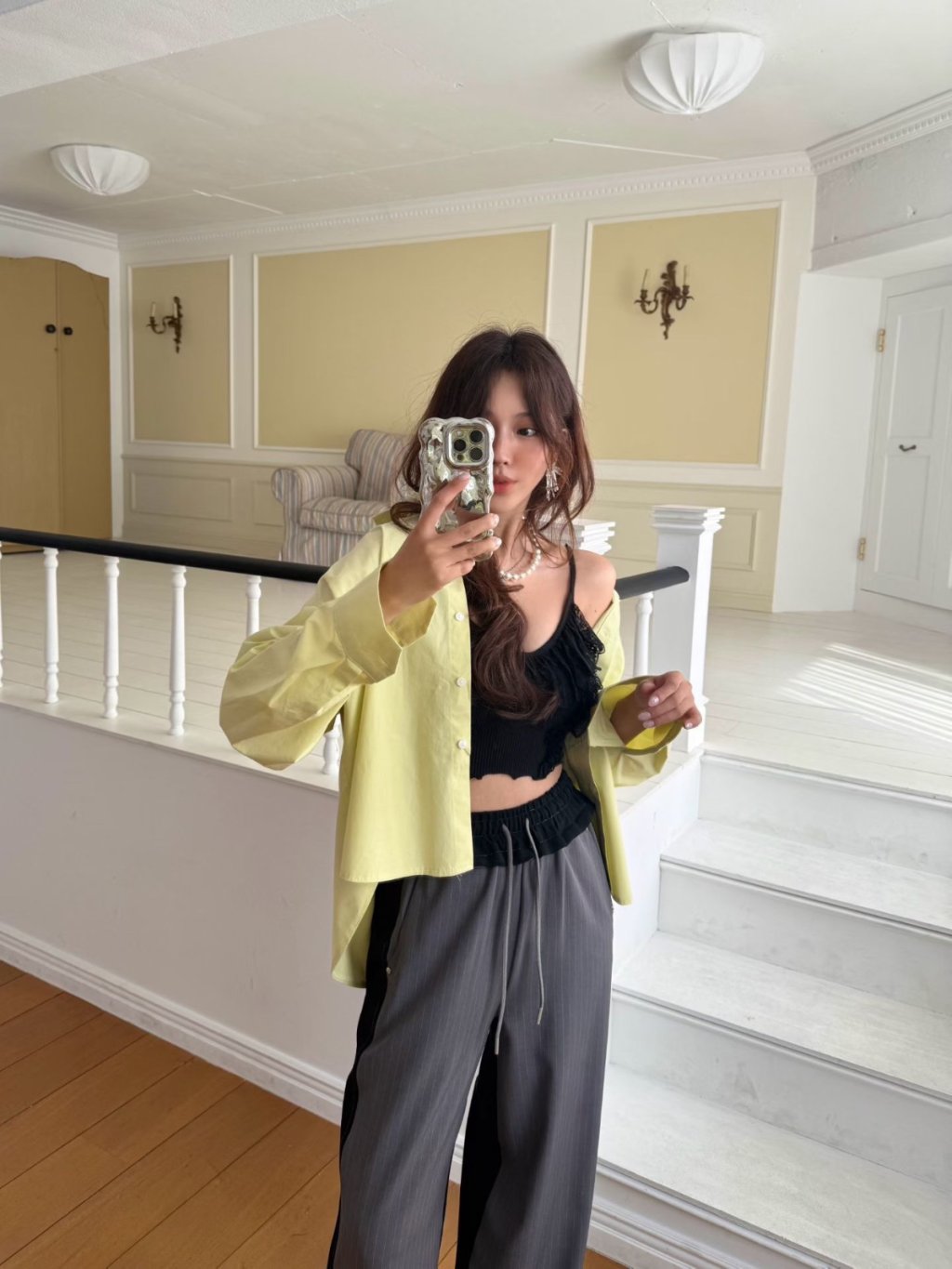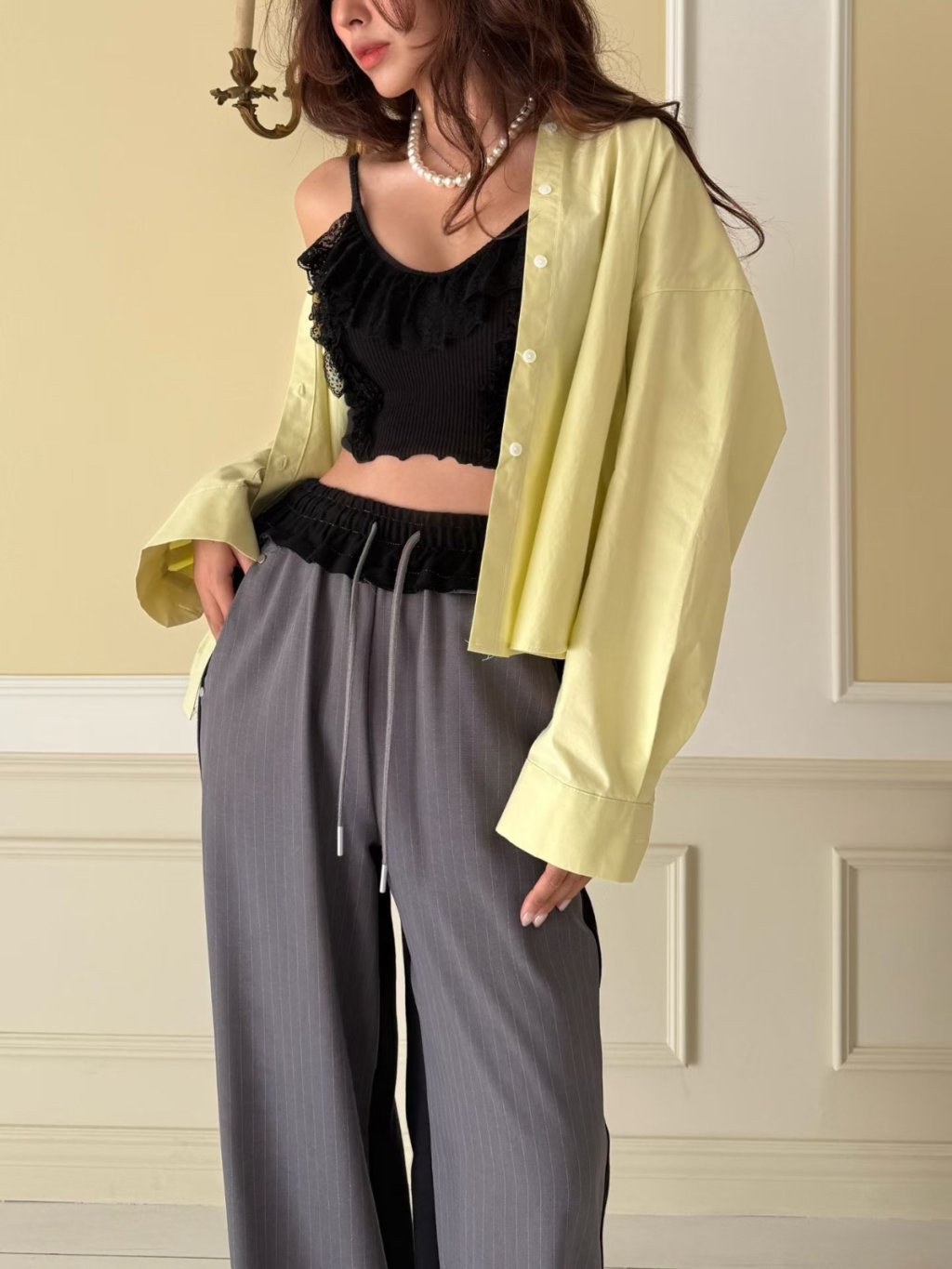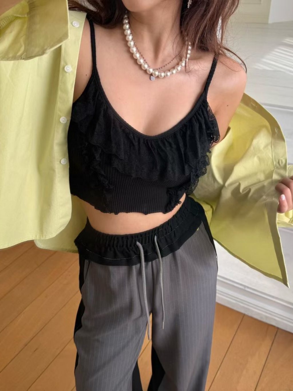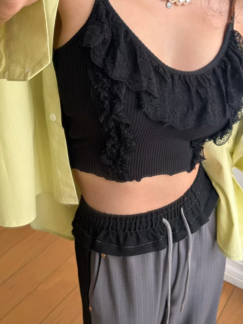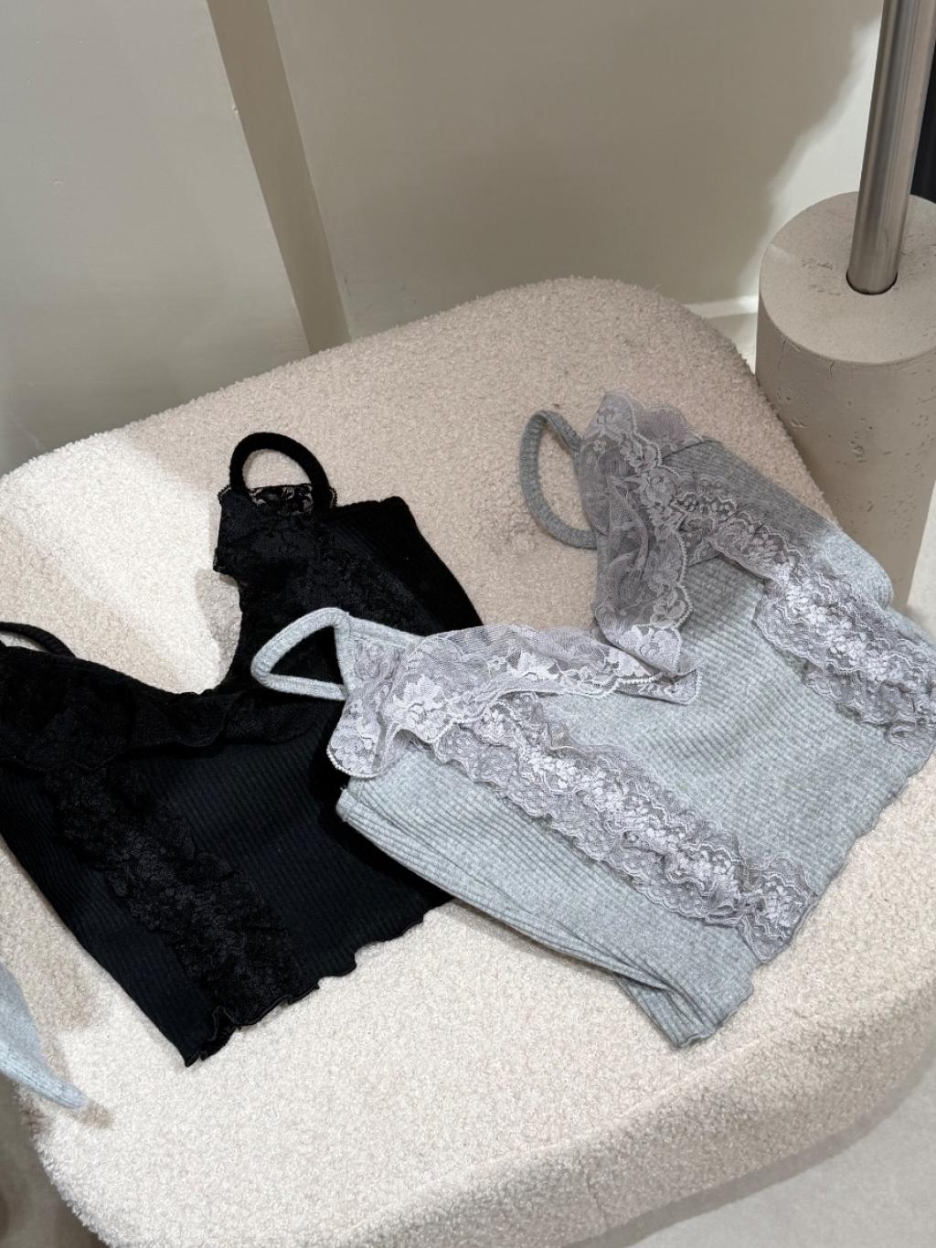 主頁 V領蕾絲花邊吊帶背心bar top