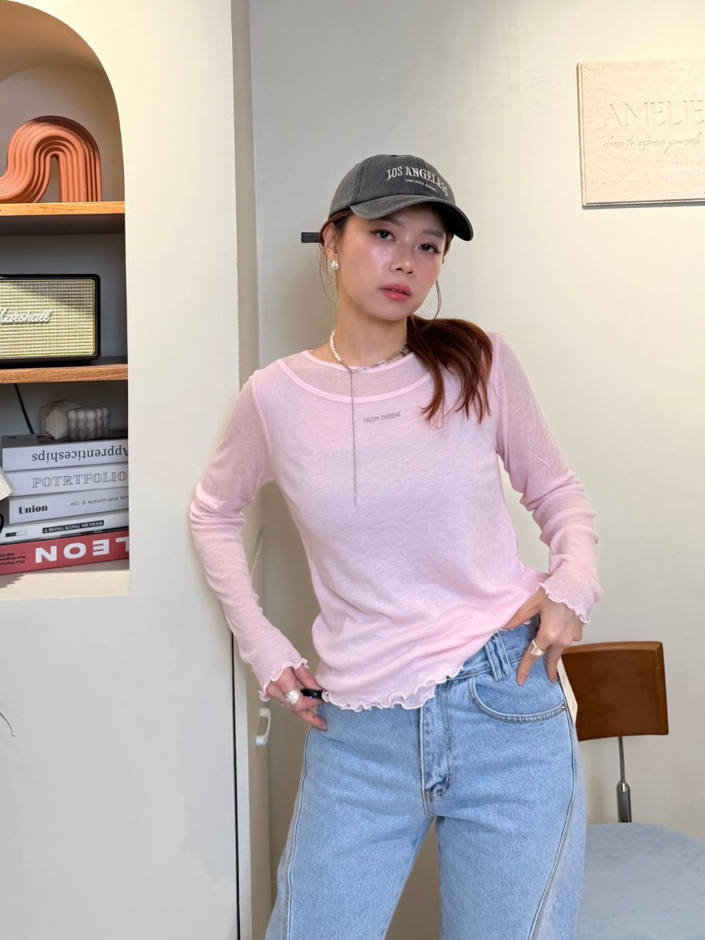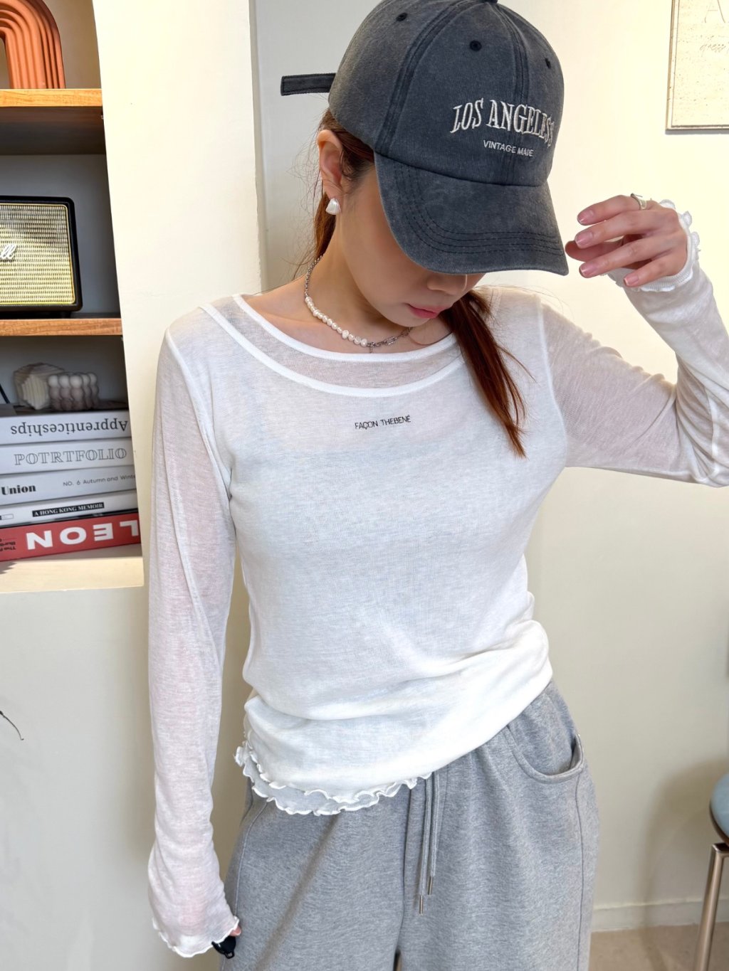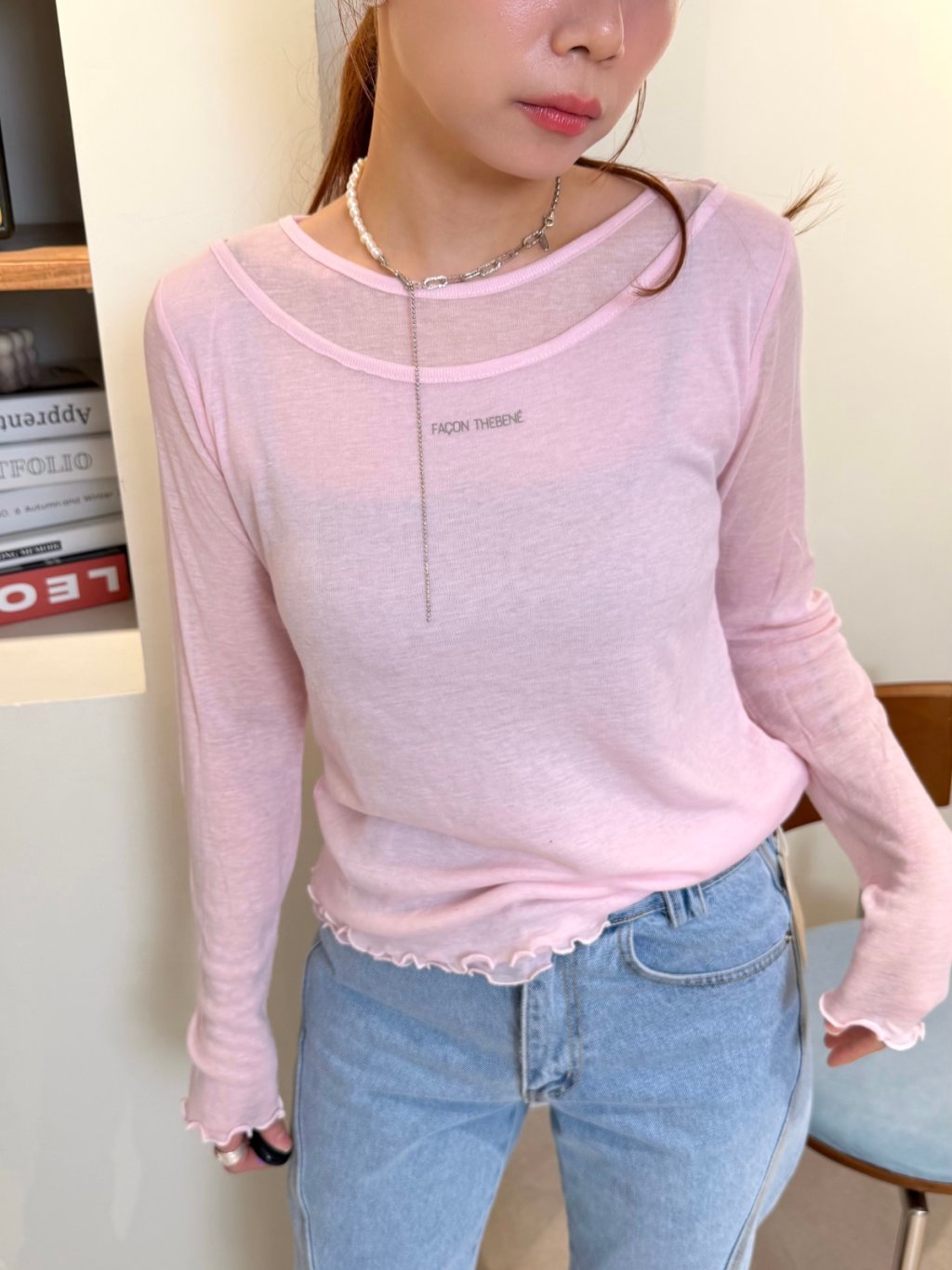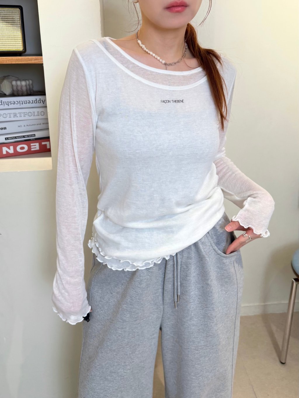 主頁 捲邊假兩件長袖TEE(LIVE SALE)