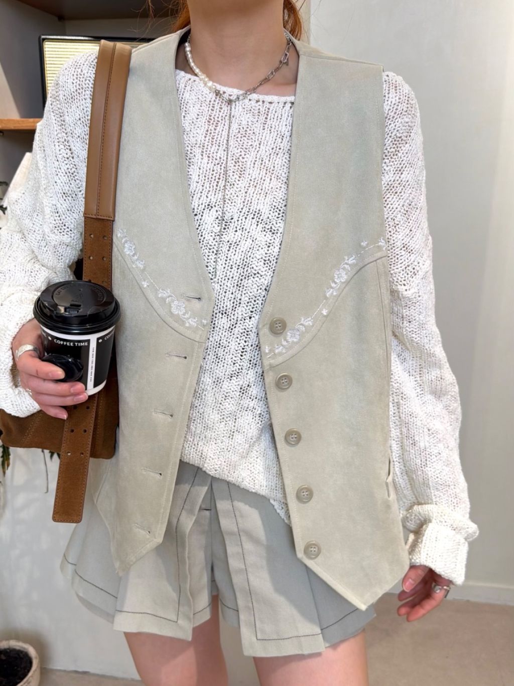 排扣刺繡馬甲