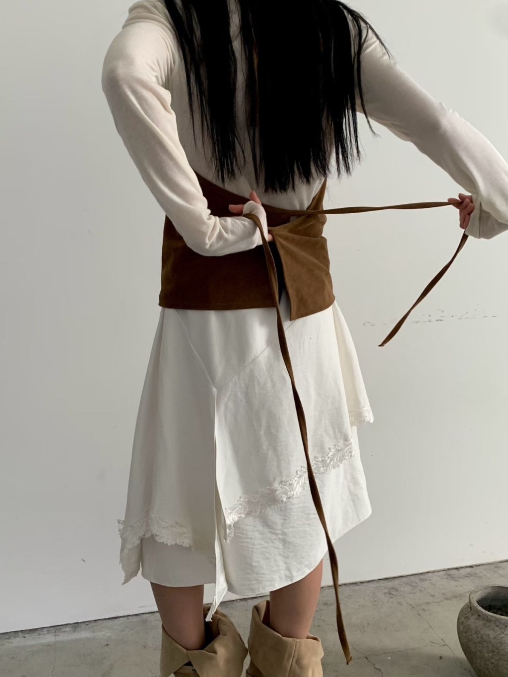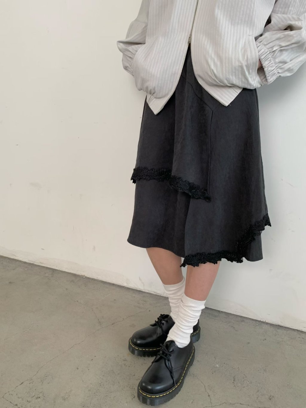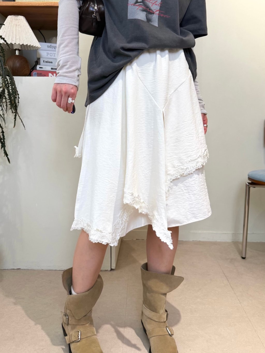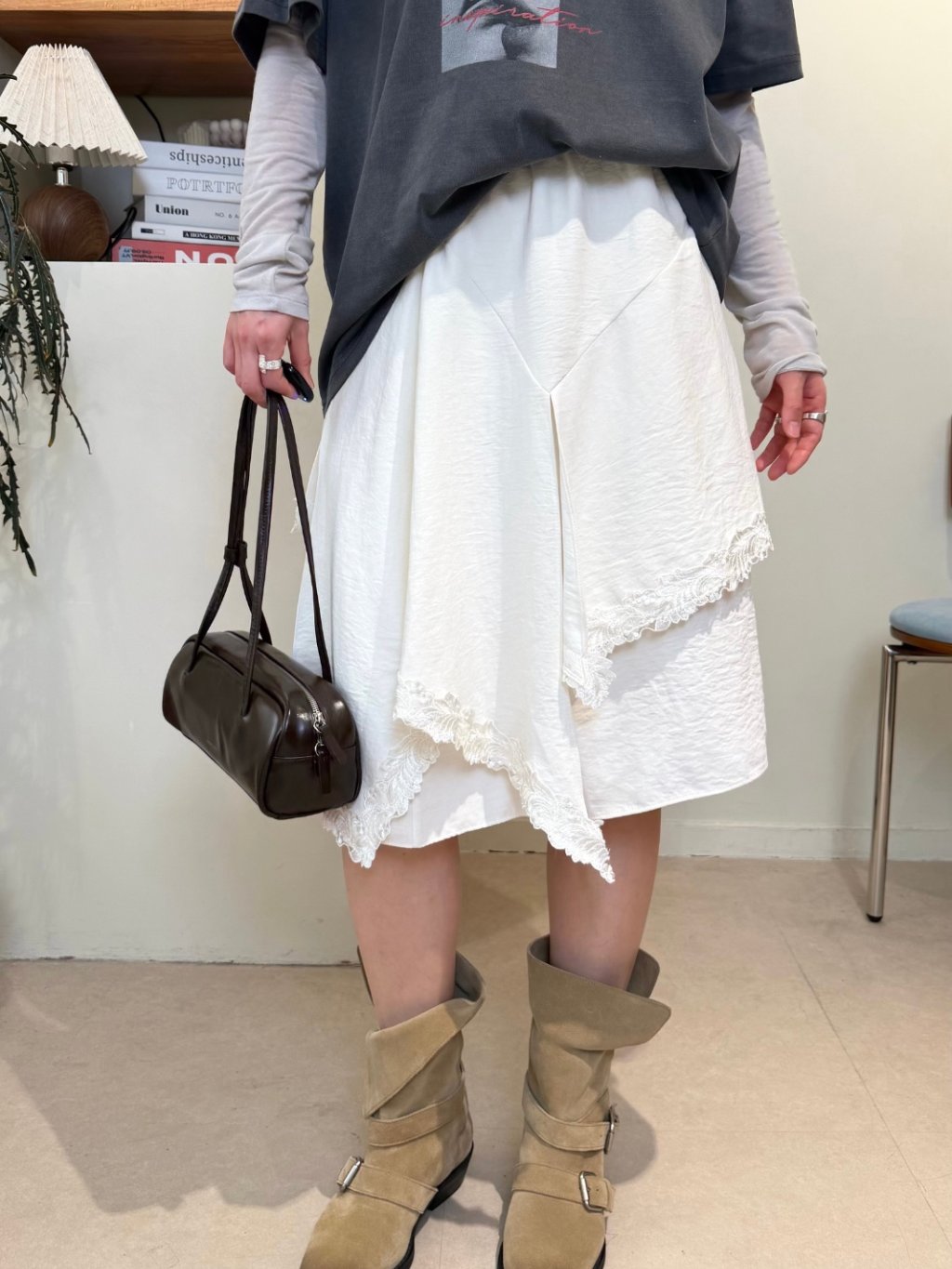主頁 橡根腰蕾絲拼接雙層半截裙(LIVE SALE)