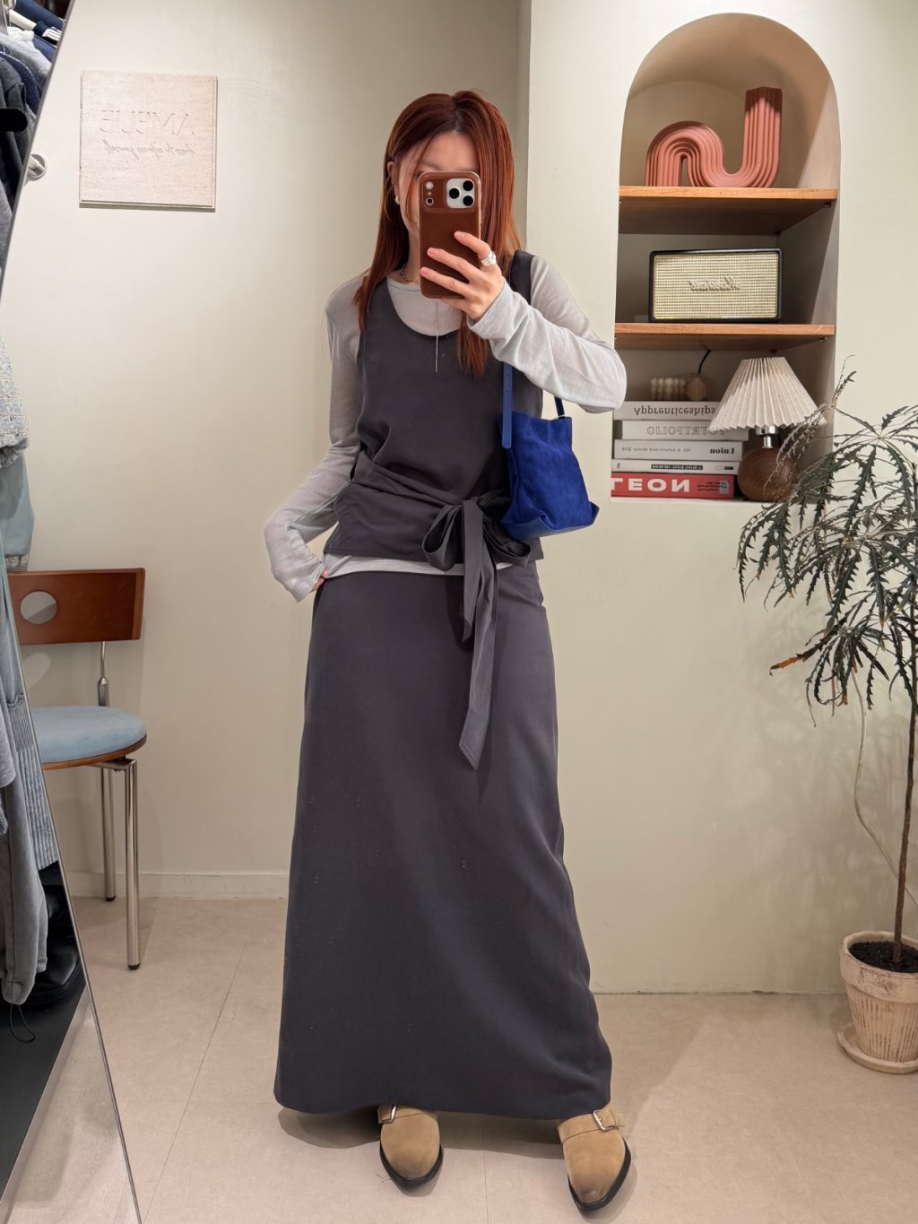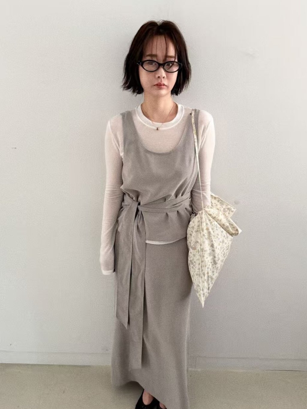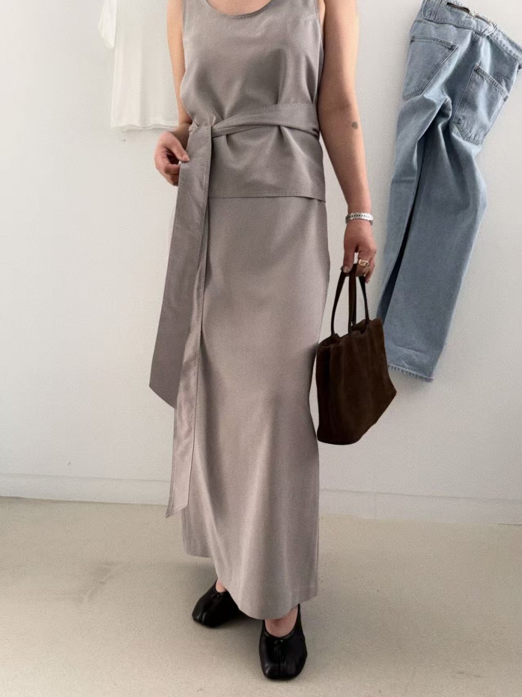 開叉洗水絲半截裙
