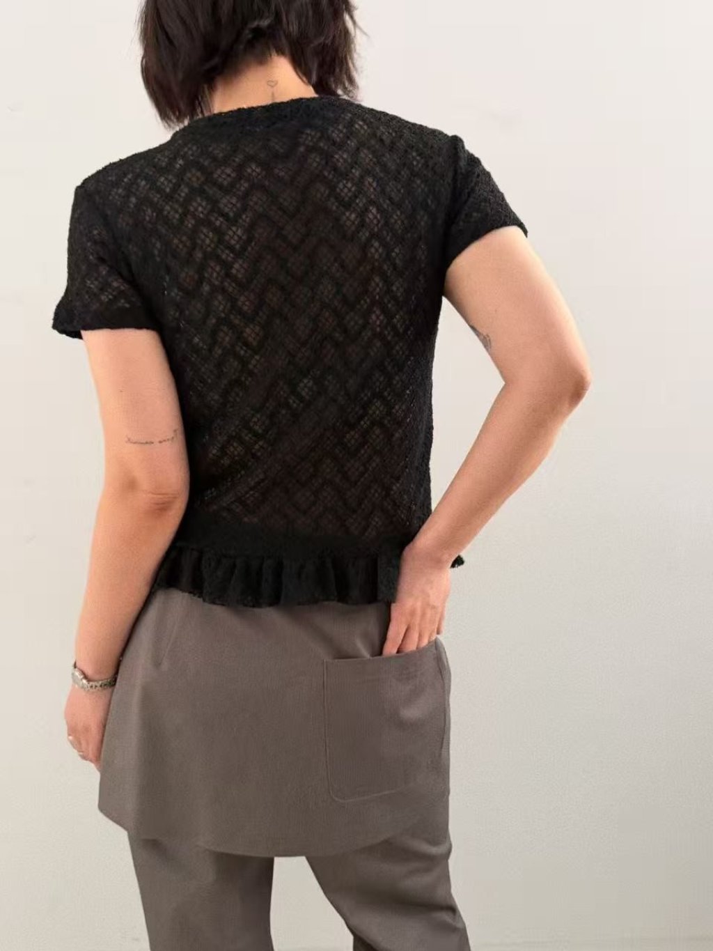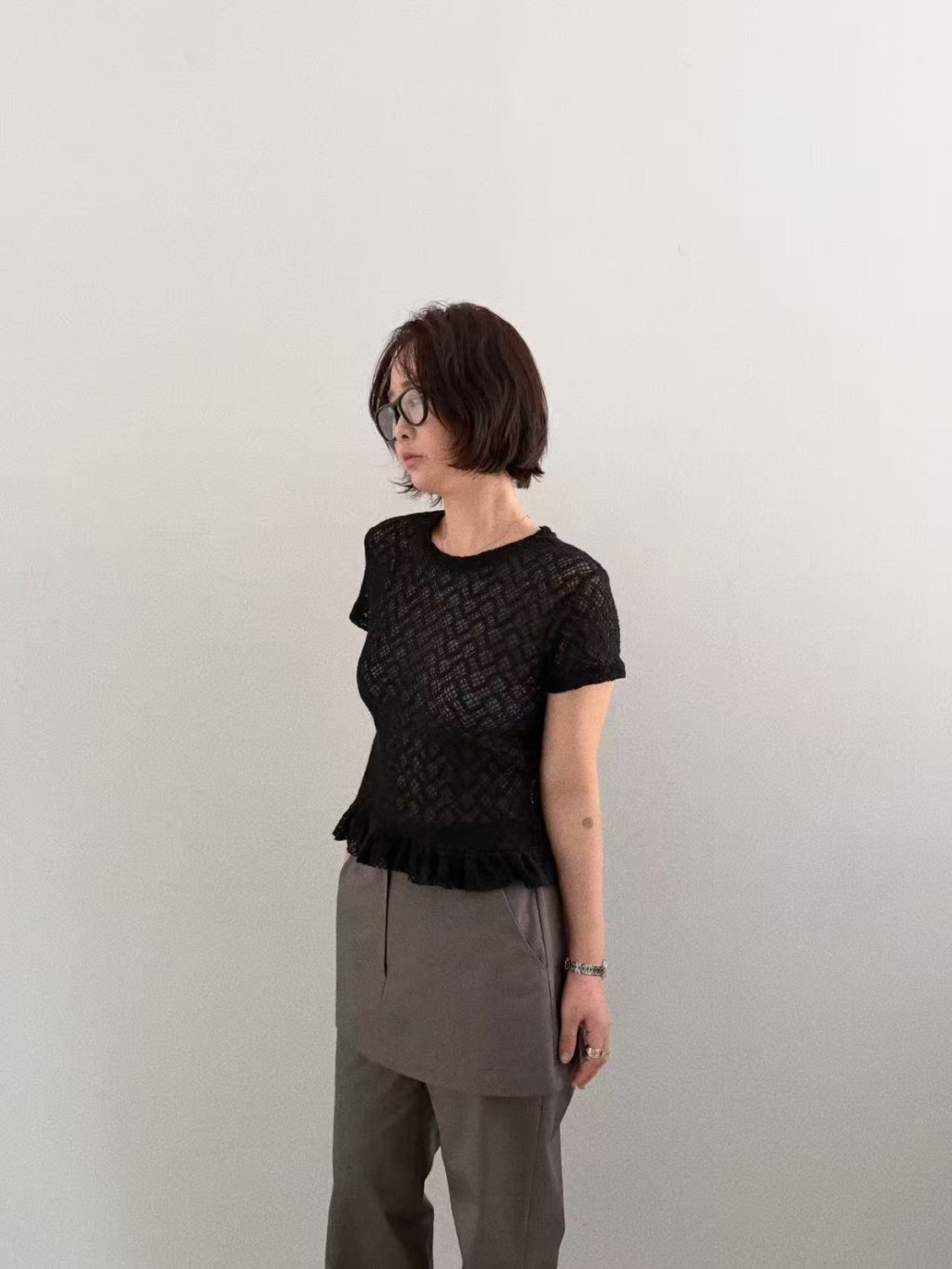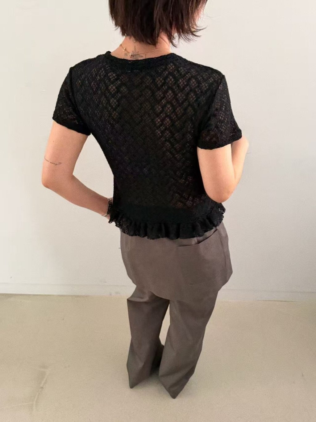 主頁 波浪條紋透視lace短袖TEE