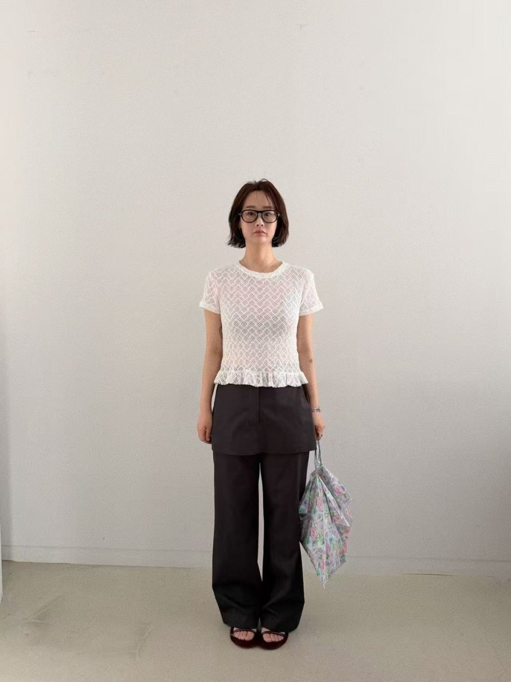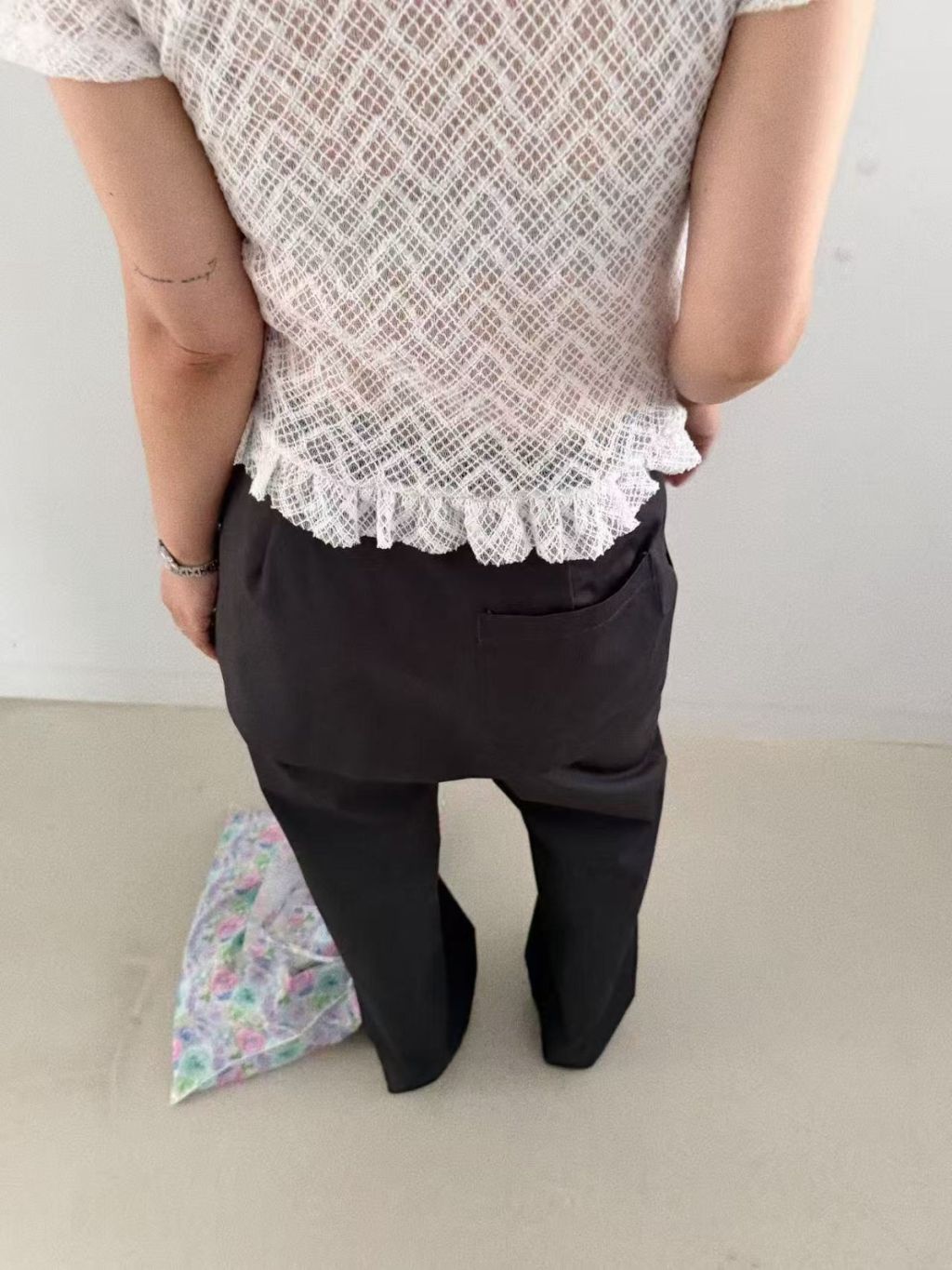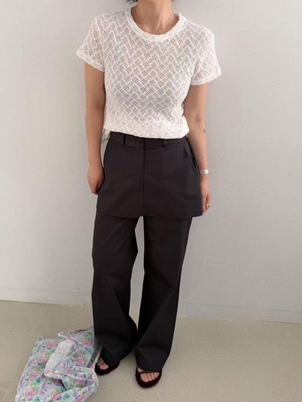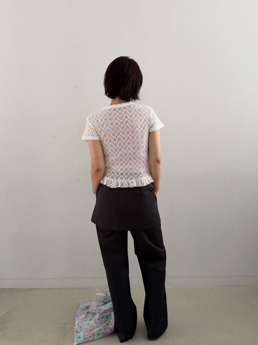 主頁 波浪條紋透視lace短袖TEE