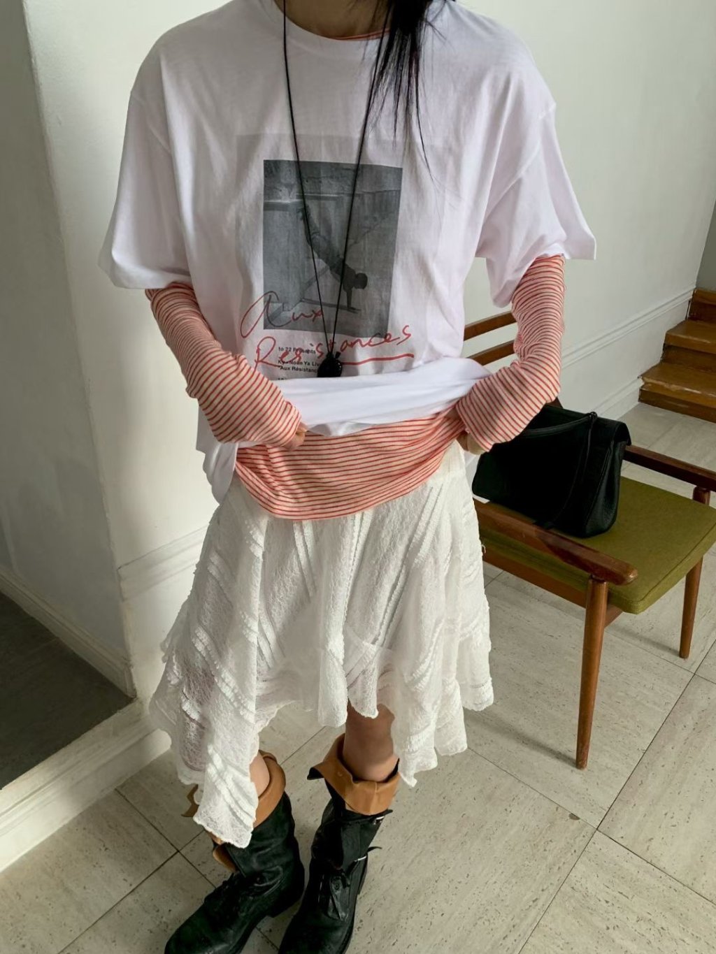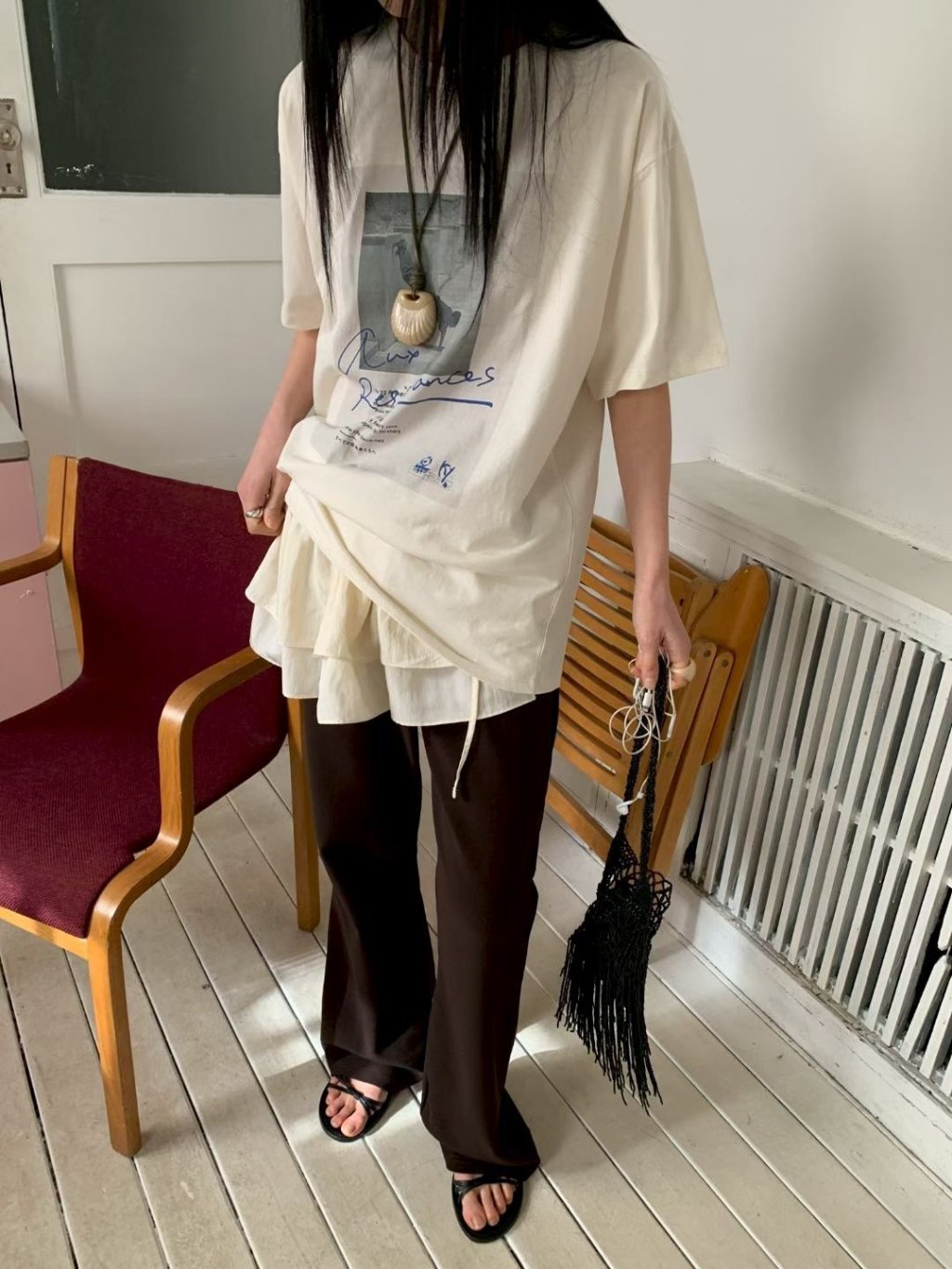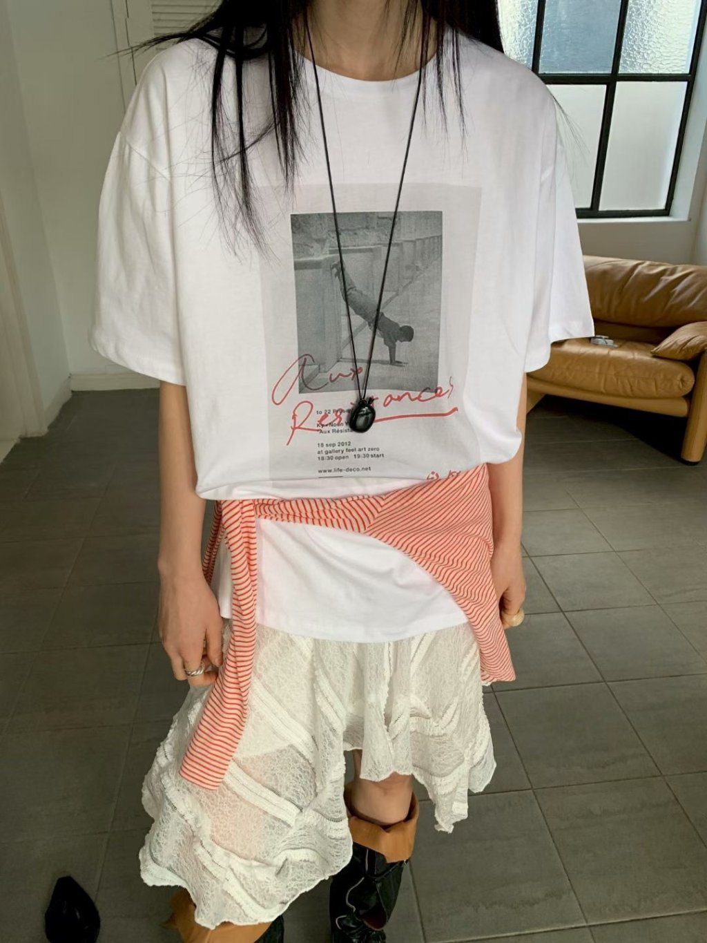 主頁 倒立圖像英文印花短袖TEE