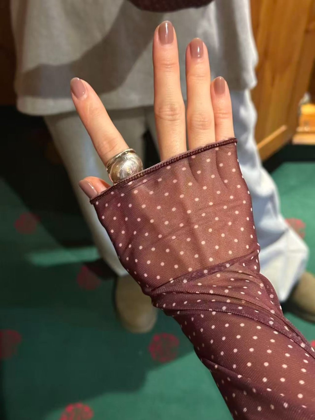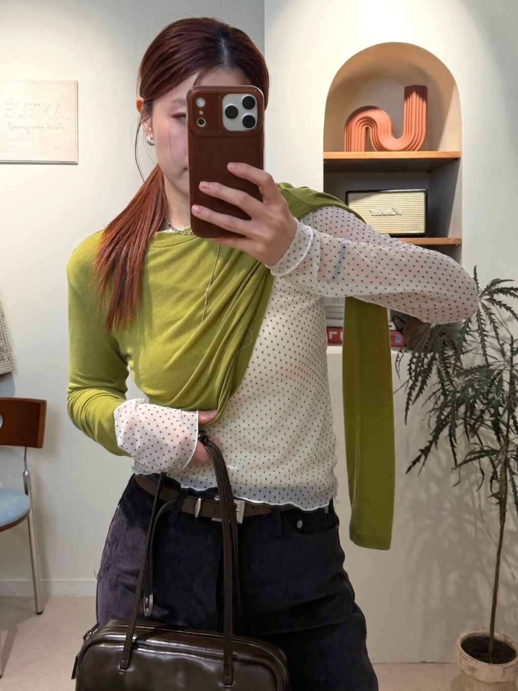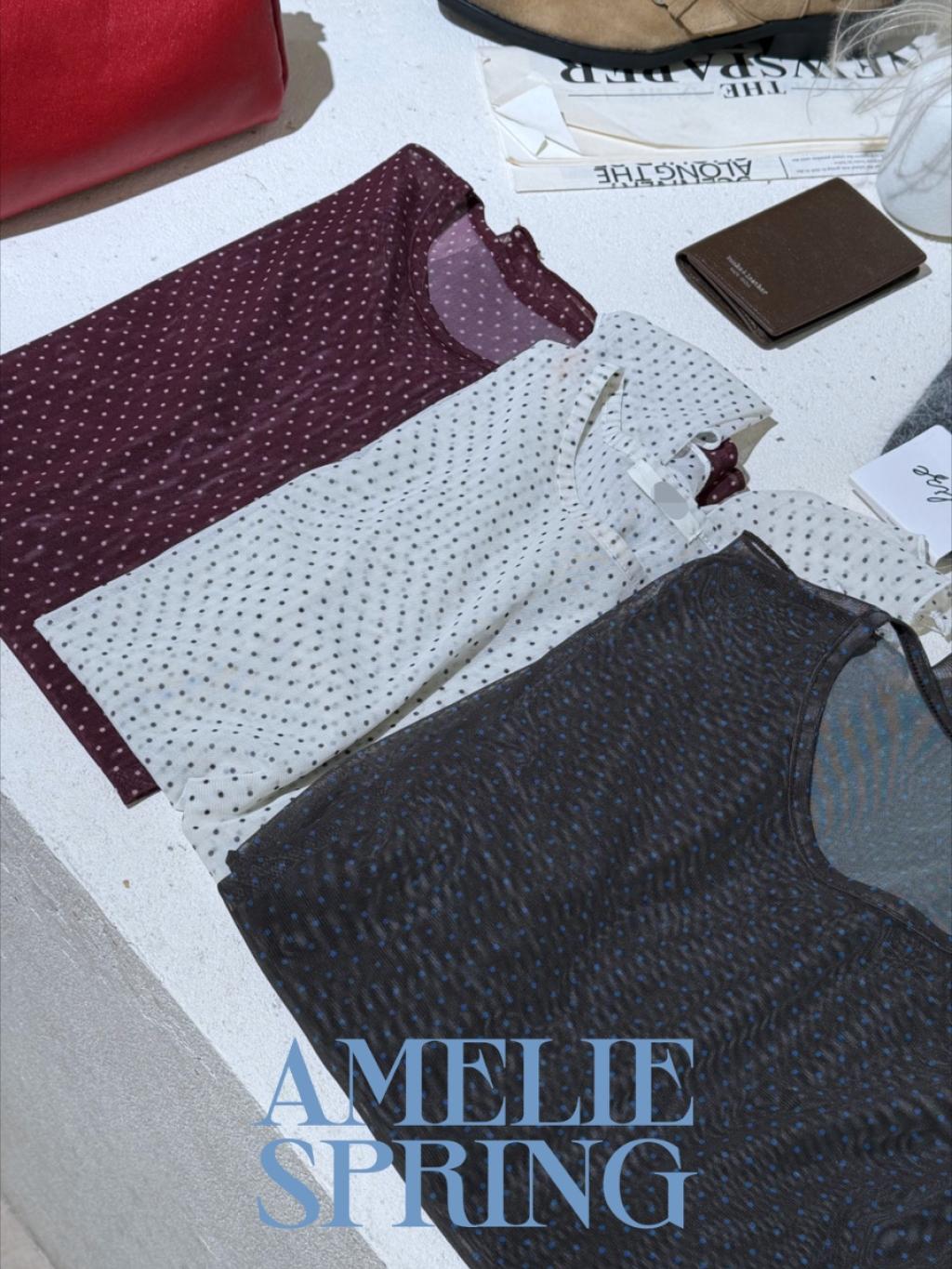 波點捲邊網紗TEE