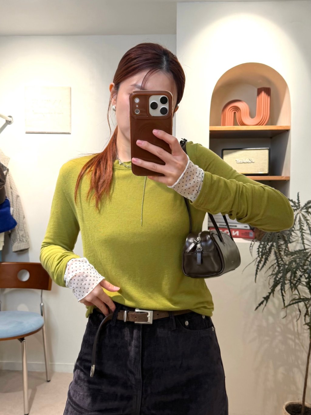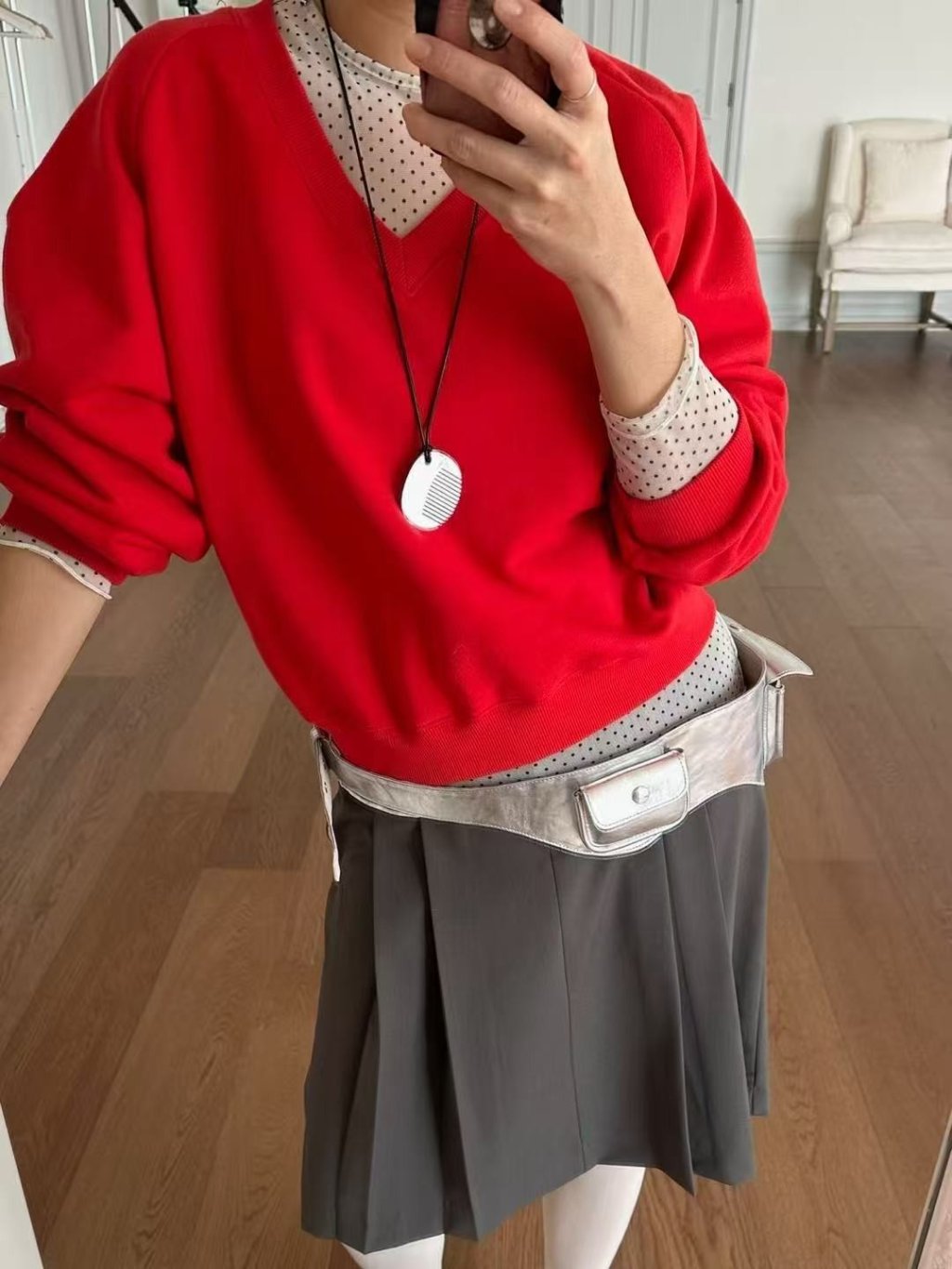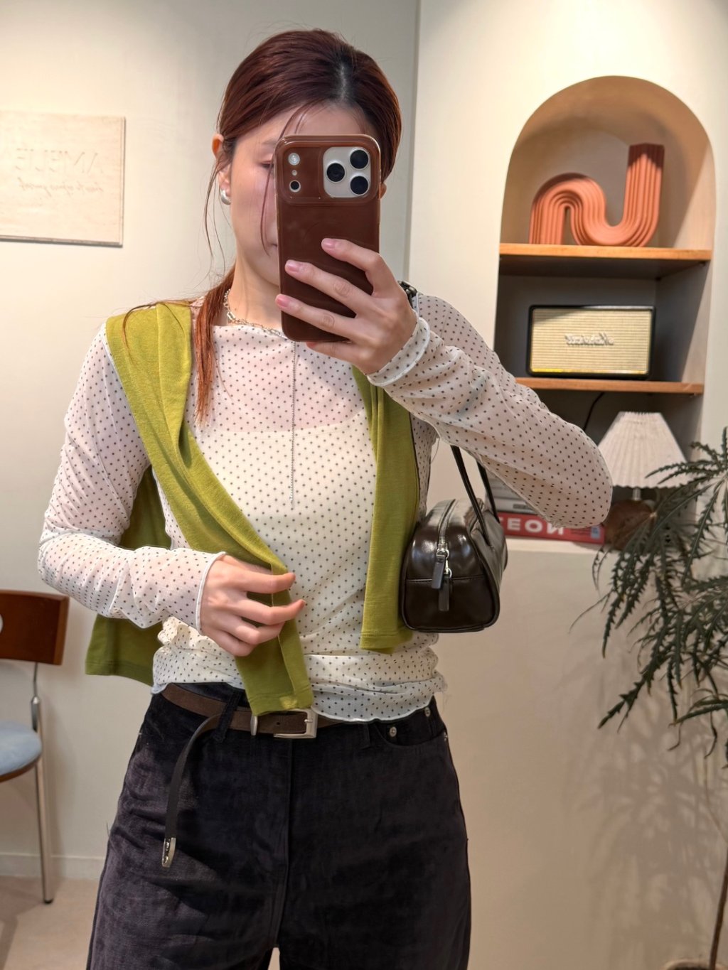 波點捲邊網紗TEE