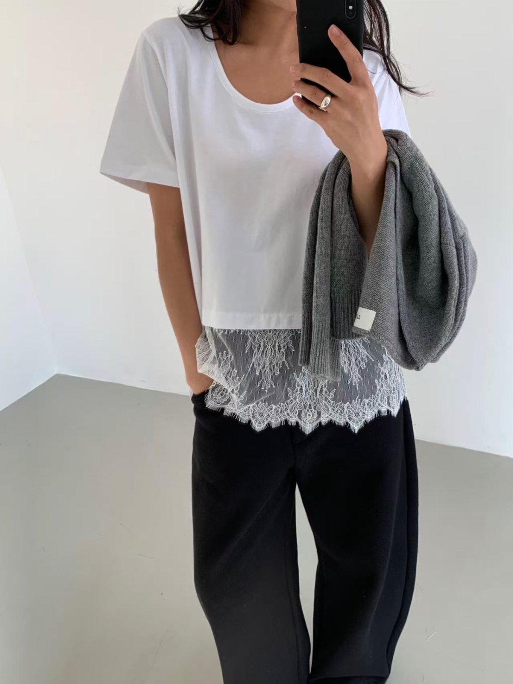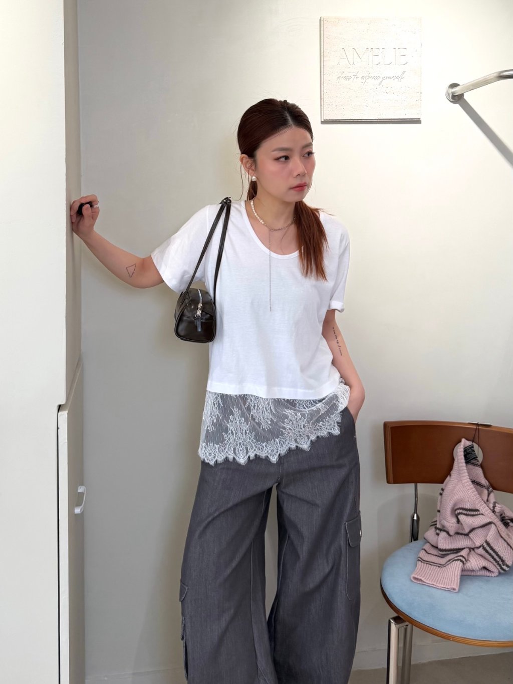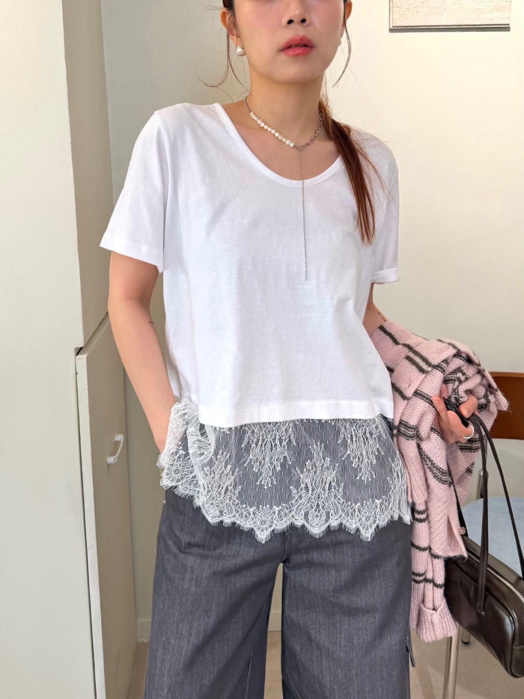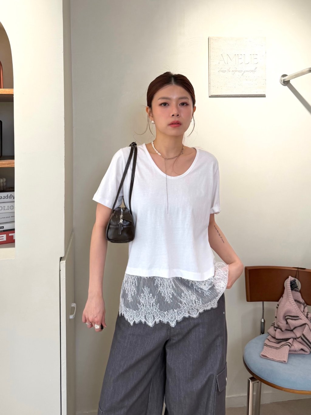主頁 拼接蕾絲短袖TEE(LIVE SALE)