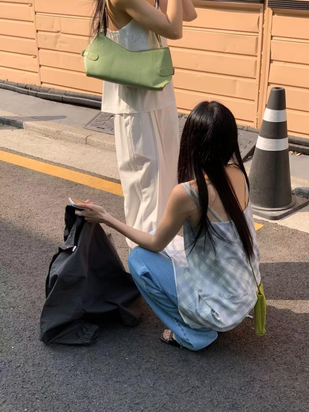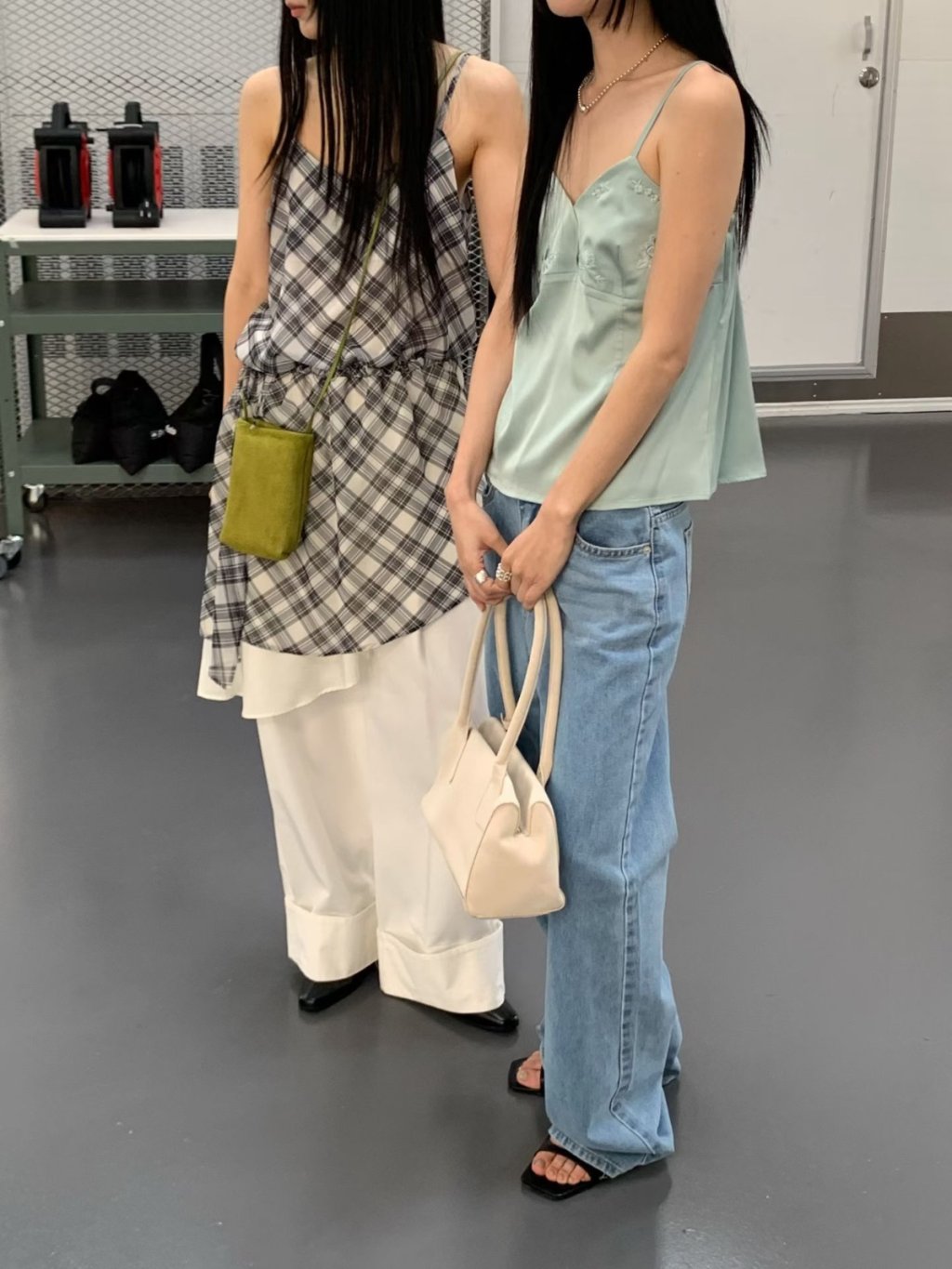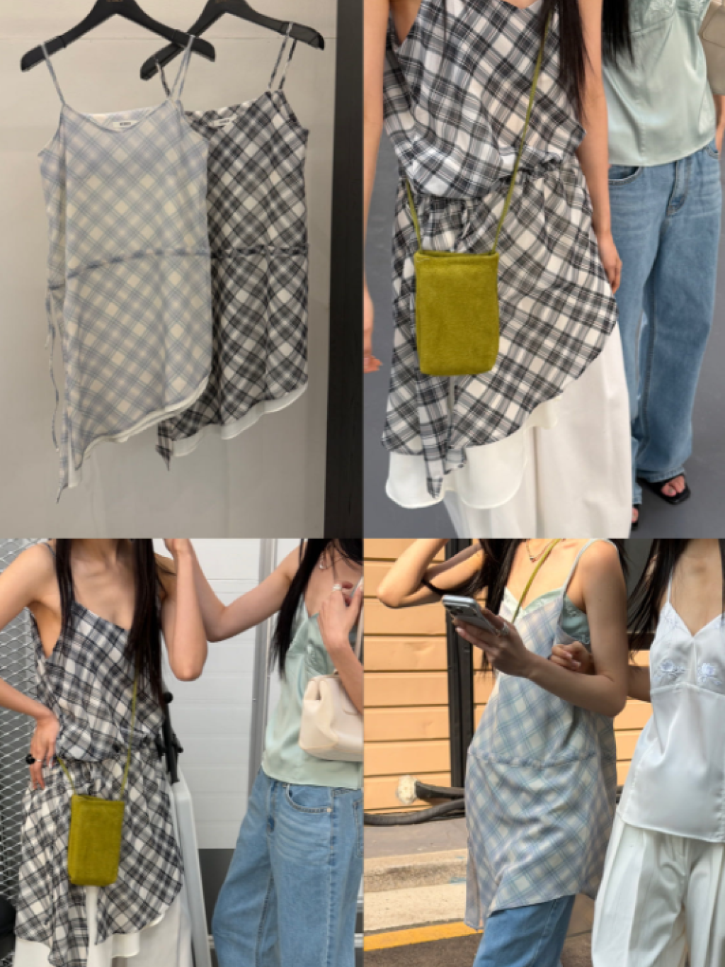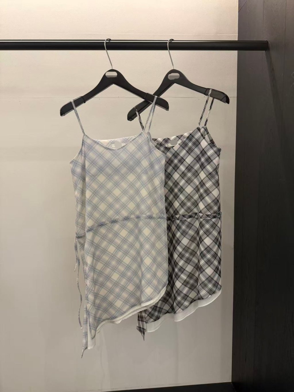 主頁 格紋吊帶抽繩不規則連衣裙OPS