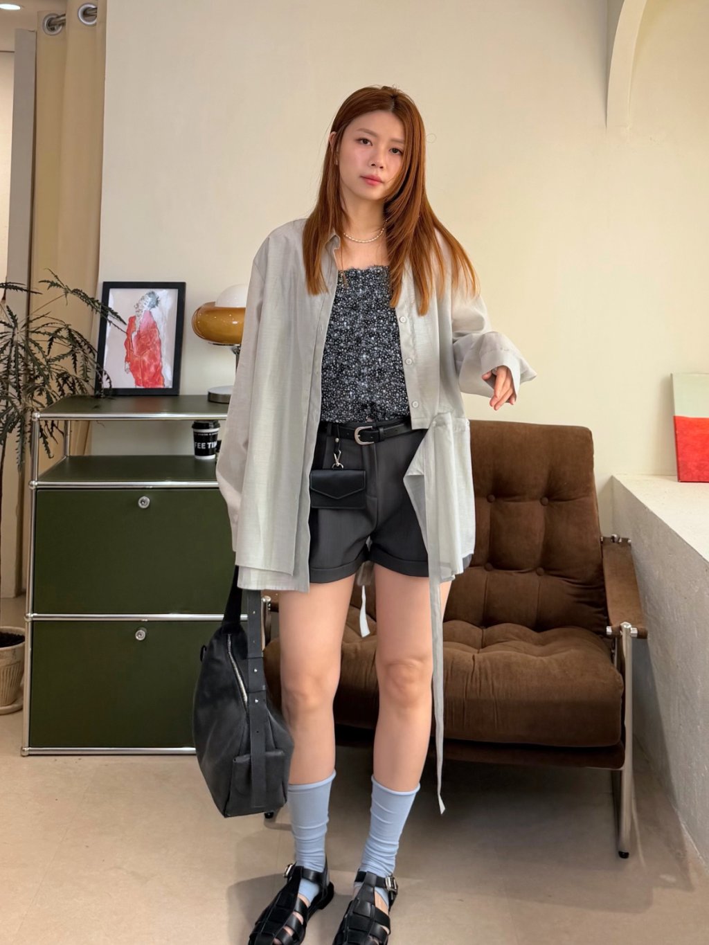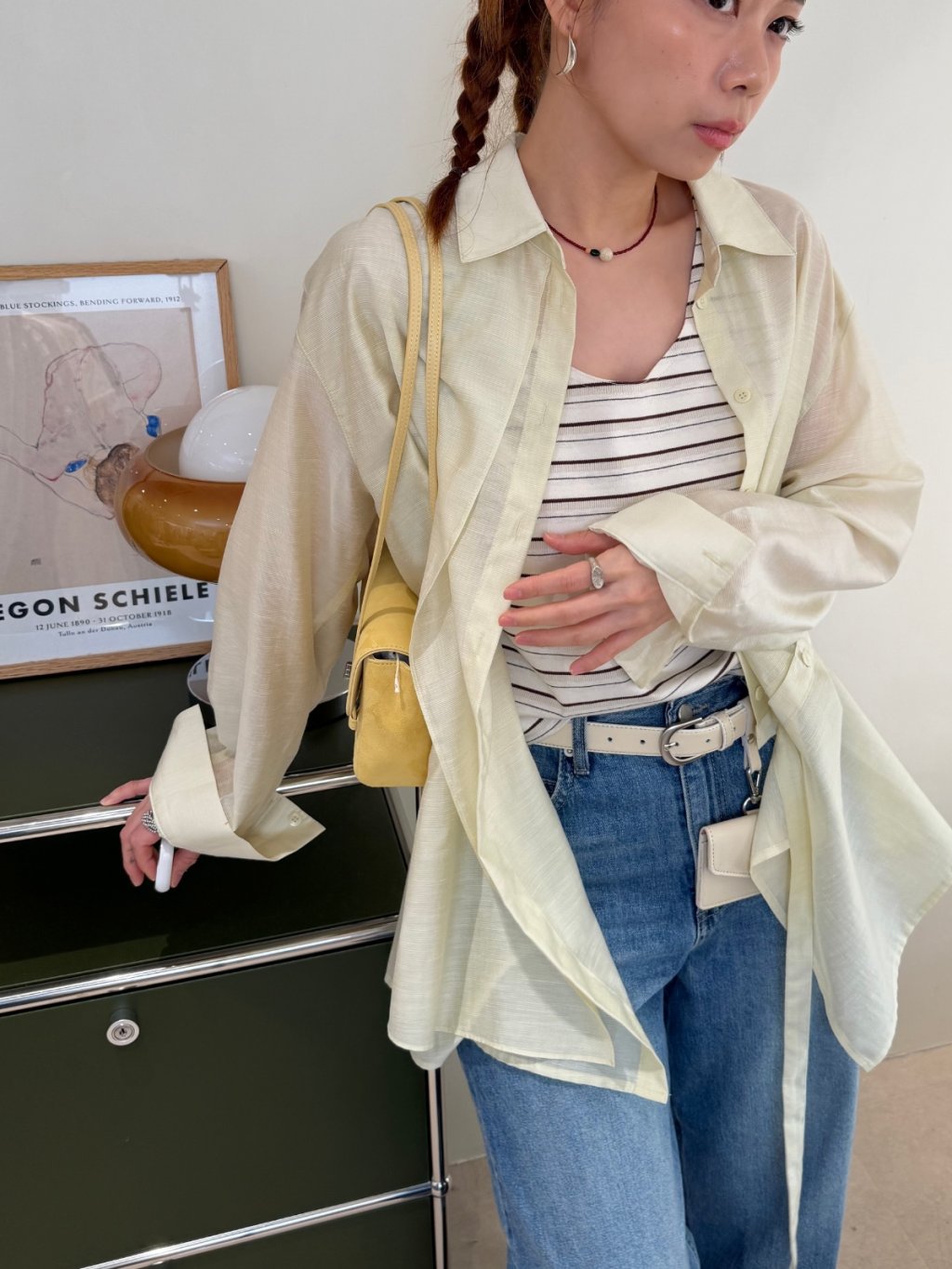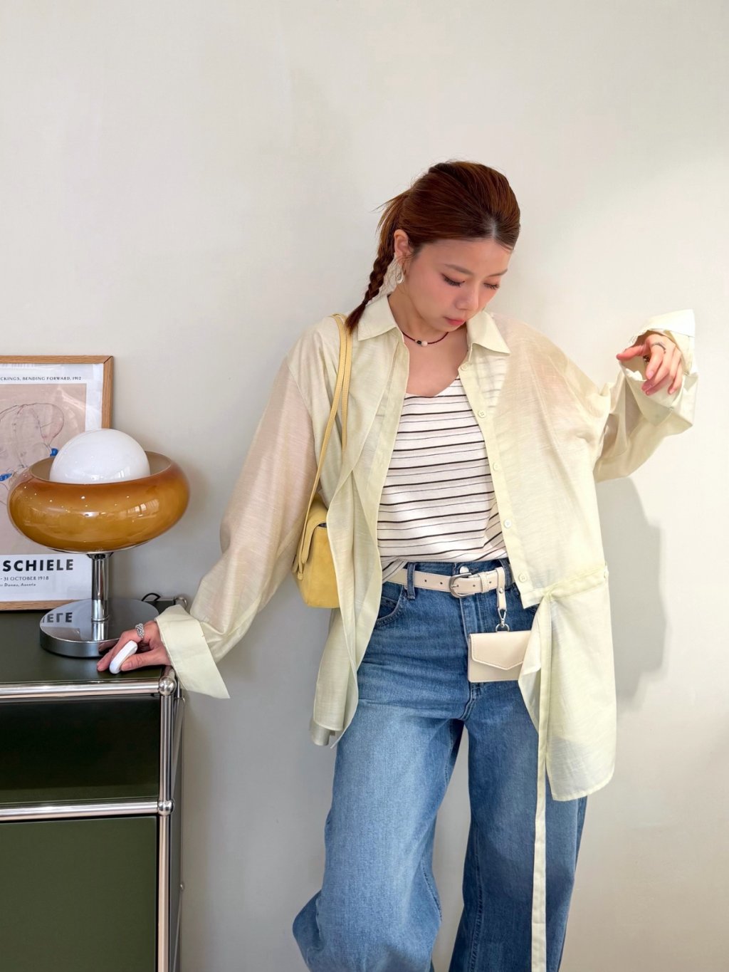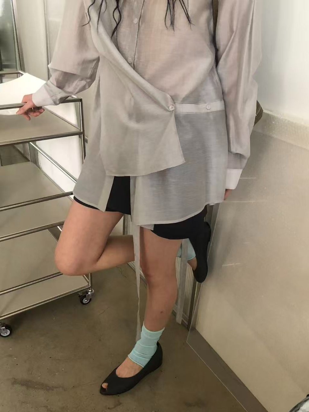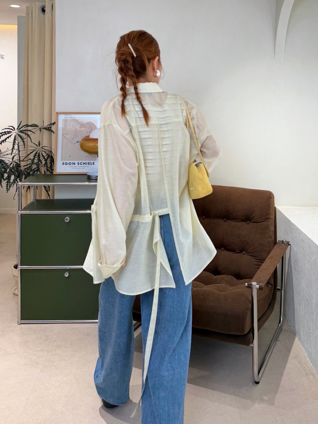 側扣不規則綁帶長袖襯衫(LIVE SALE)