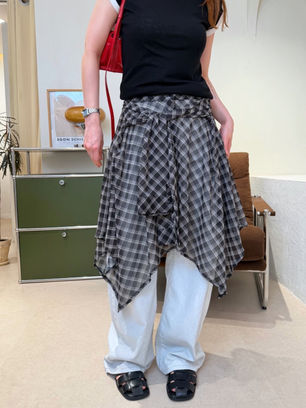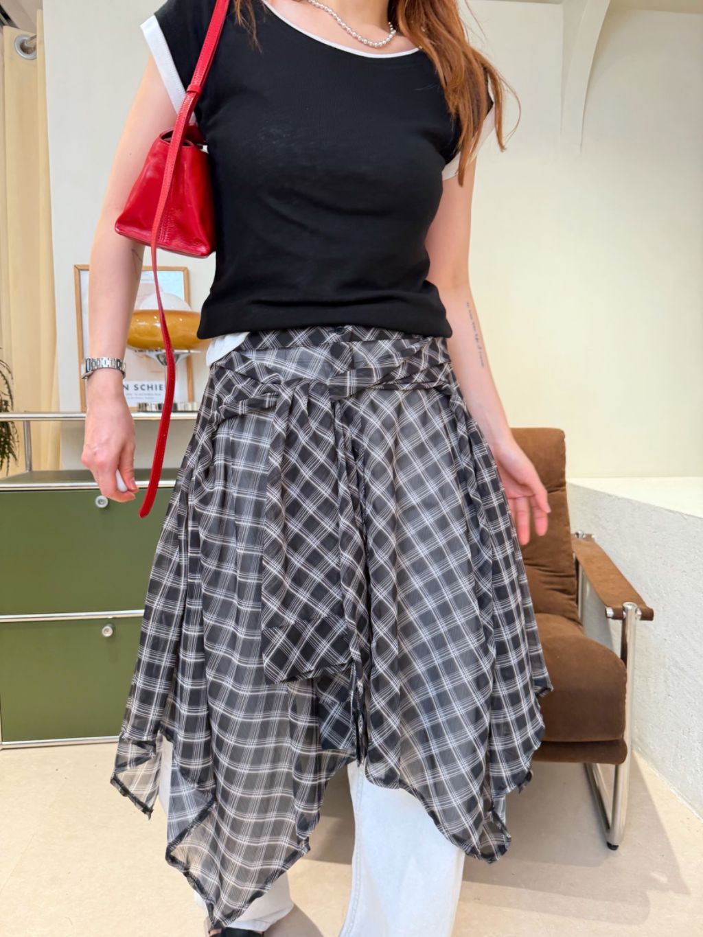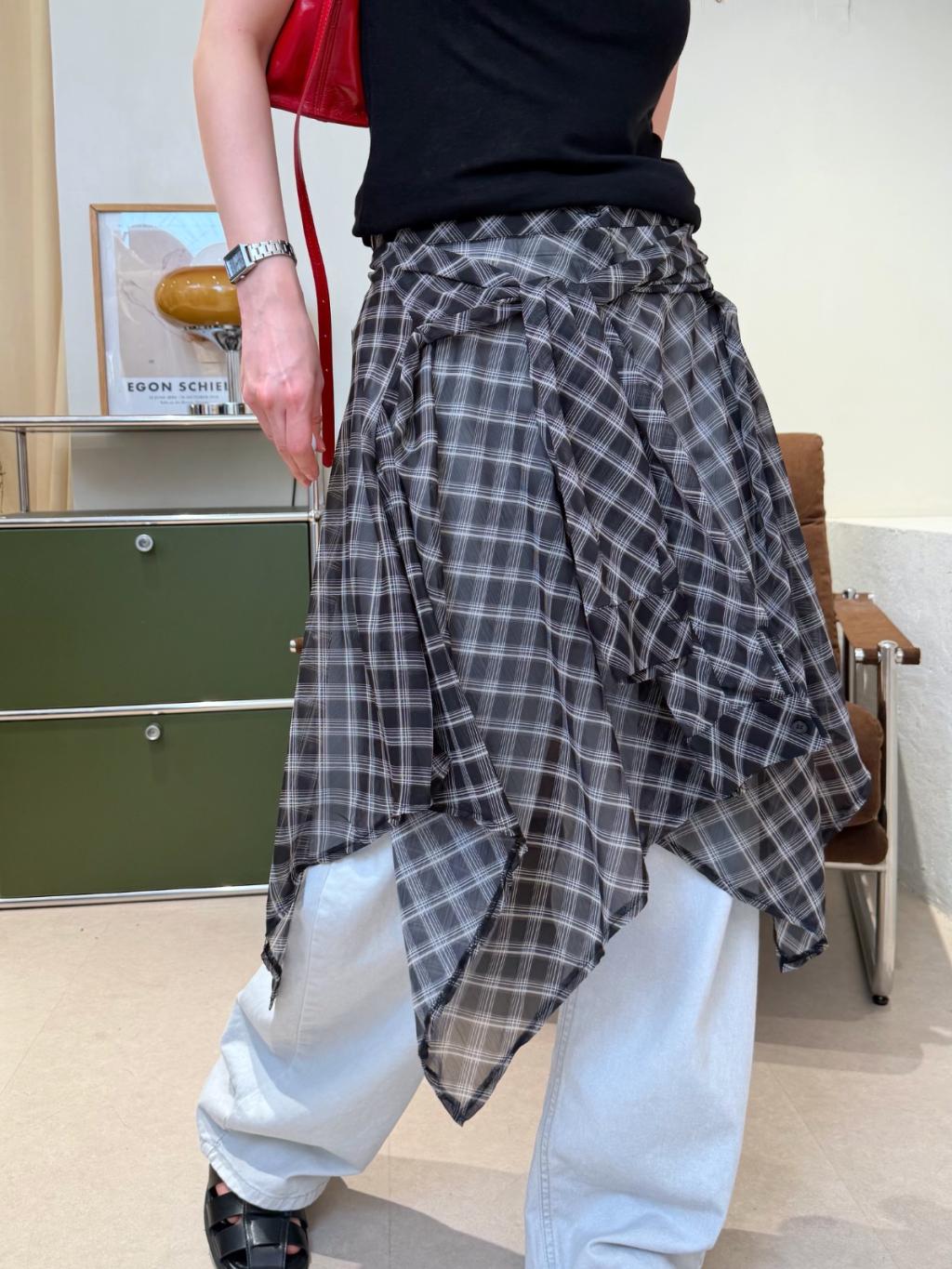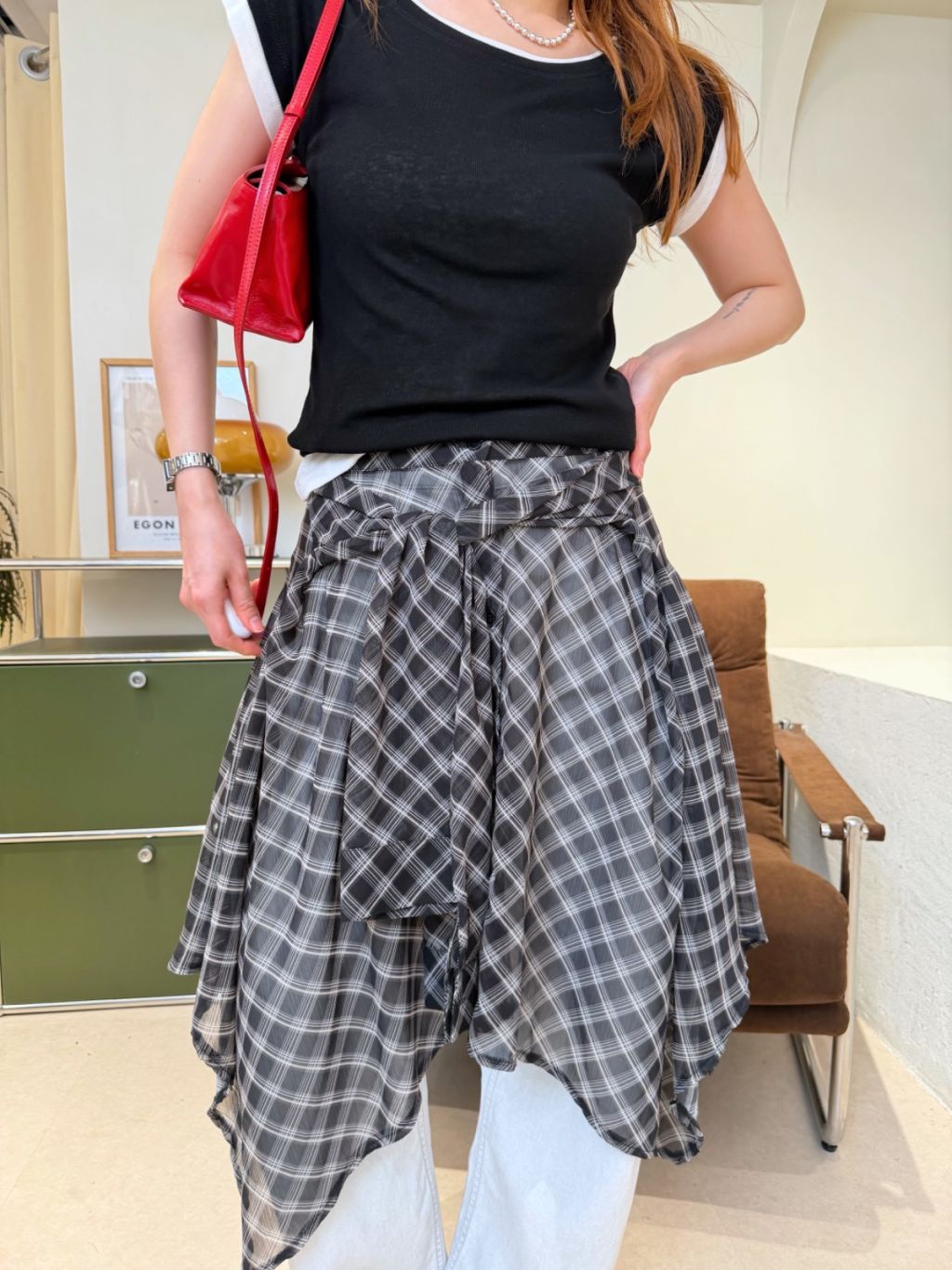 主頁 雪紡格子不規則半截裙(LIVE SALE)
