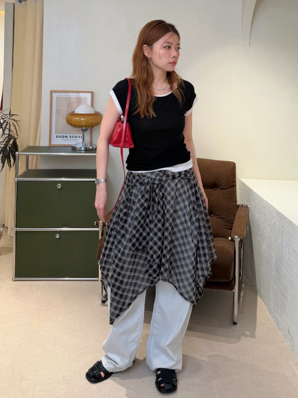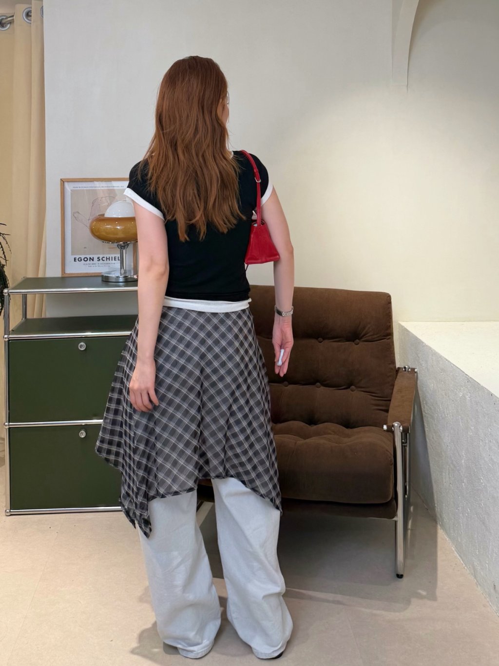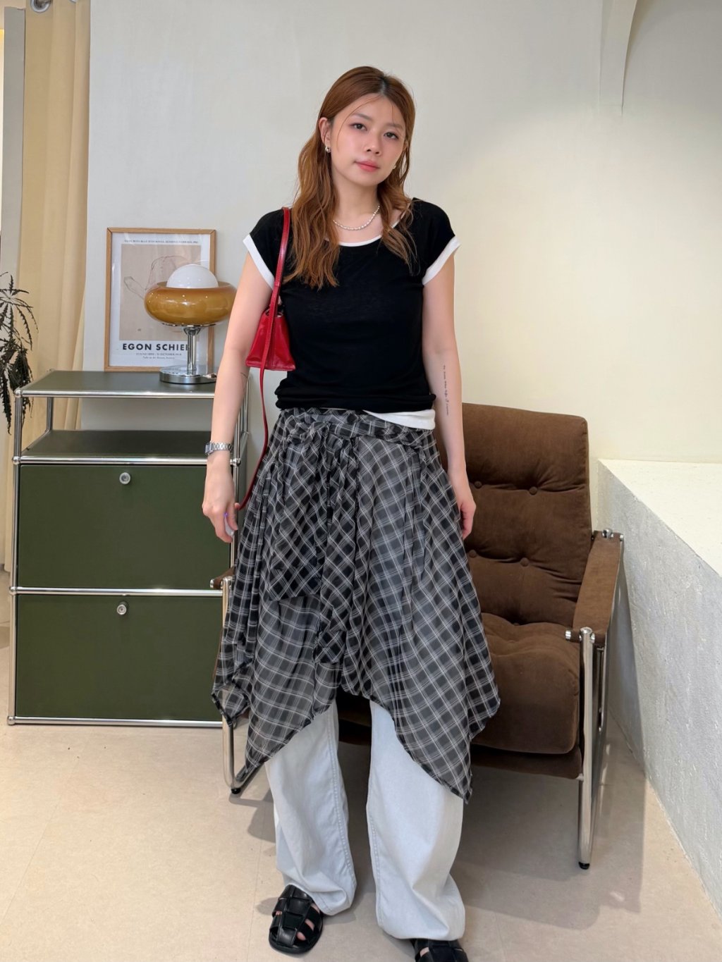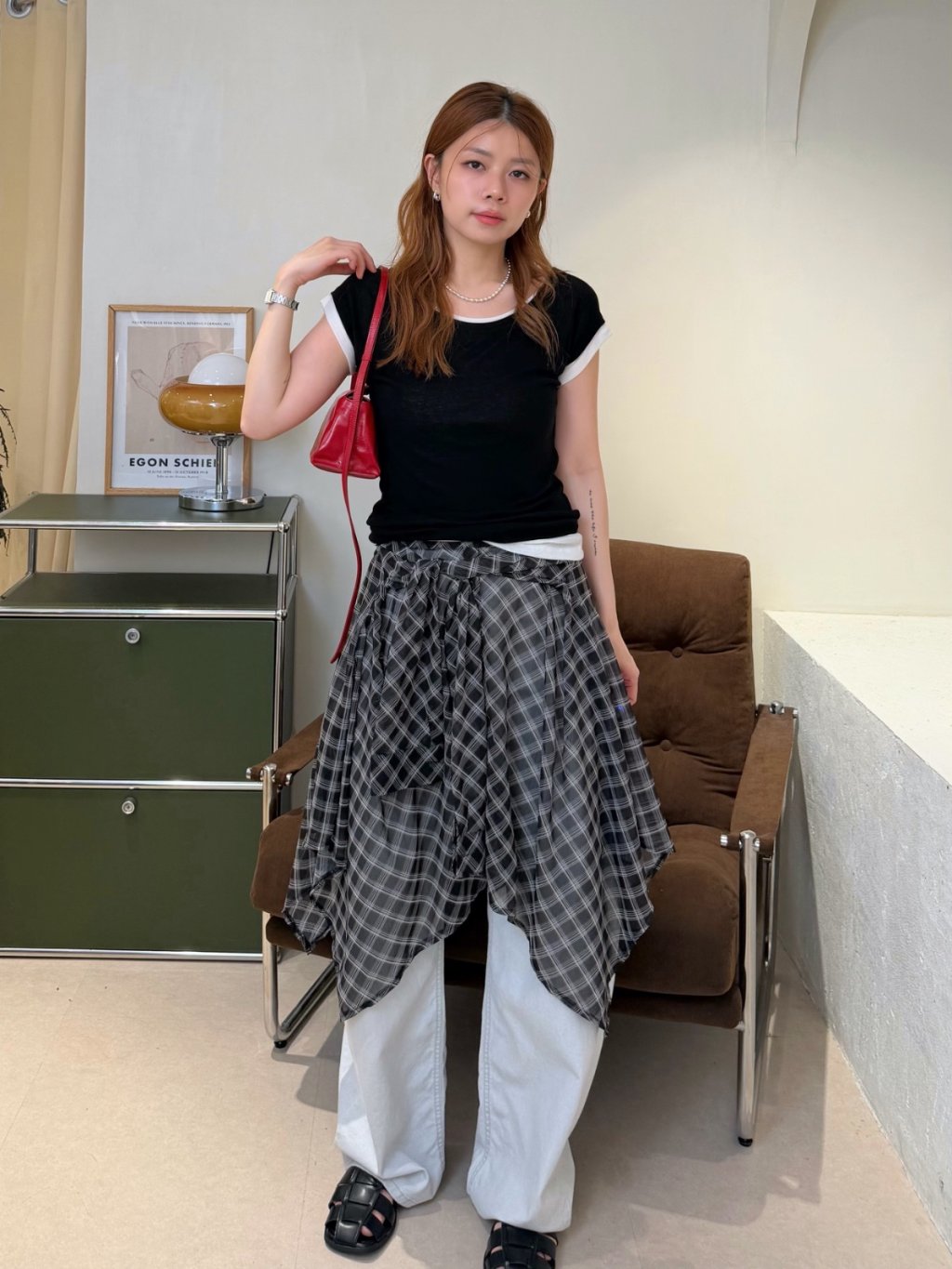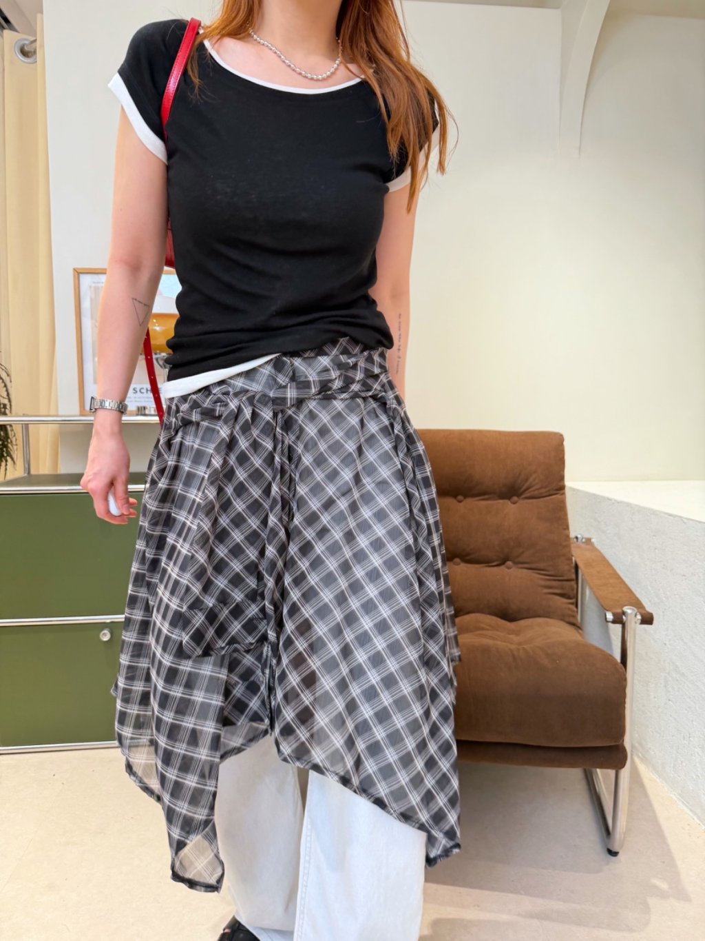 主頁 雪紡格子不規則半截裙(LIVE SALE)