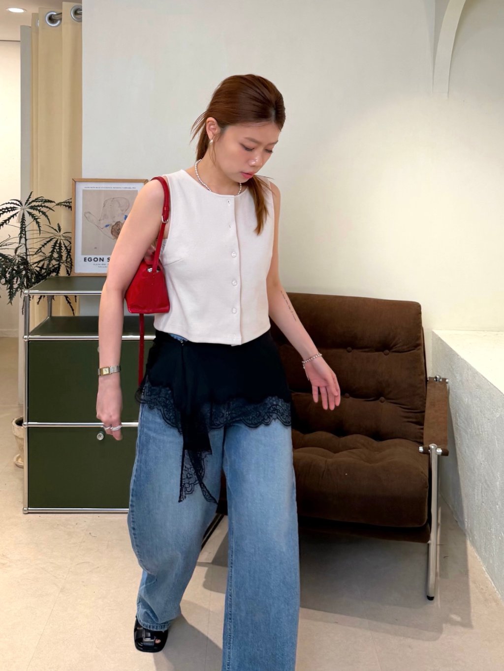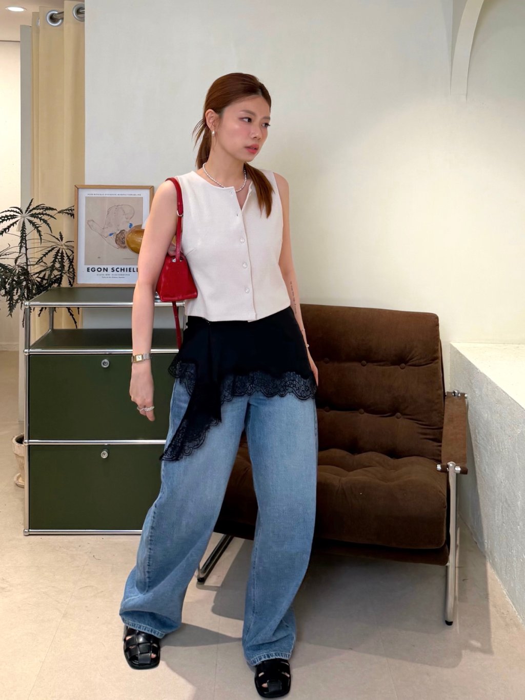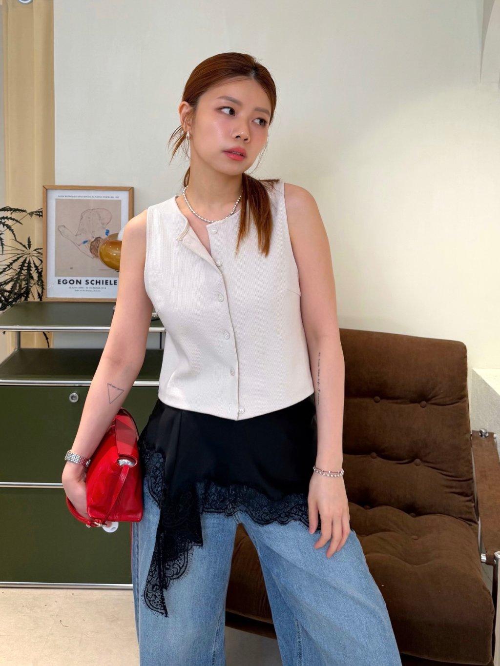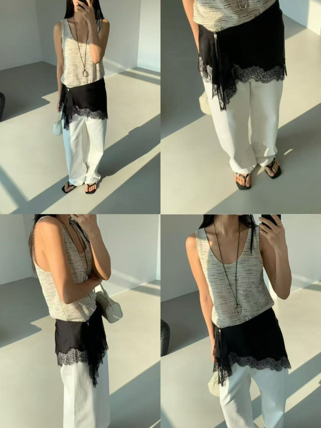 不對稱蕾絲拼接屁簾(LIVE SALE)