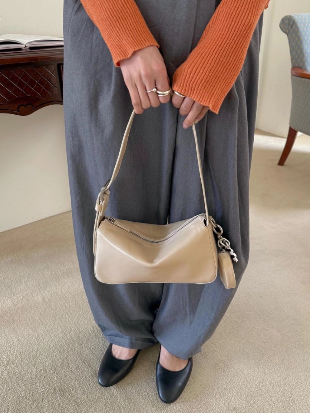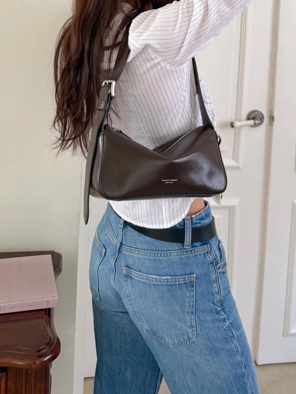 主頁 真皮可調節肩帶單肩包(LIVE SALE)